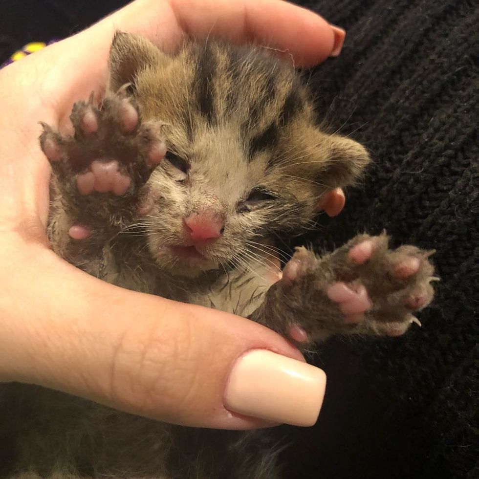 Three days later, Rocky was strong enough to start crawling. He finally got a much-needed bath and even began to purr. He had amazing fighting spirit from the start.