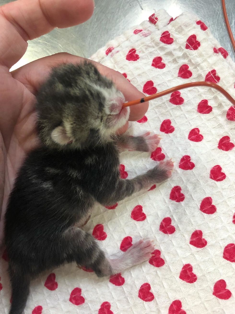 "Cleft palate babies should never be allowed to nurse or be bottle fed as they will aspirate and die quickly. Tube-feeding is the only way to save them. Not many people know how or are comfortable tube feeding, which is one of the reasons we started getting these cleft palate babies," Rachel told Love Meow.