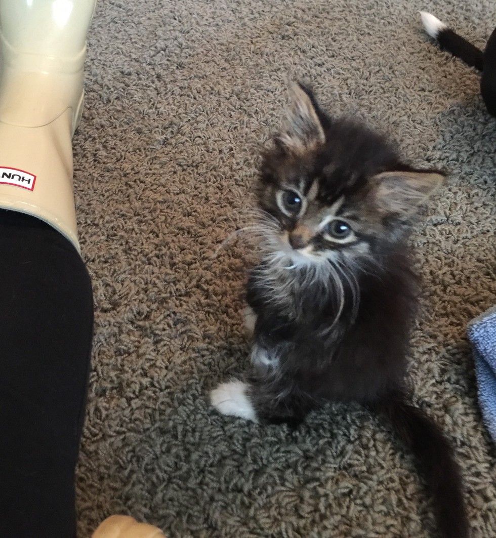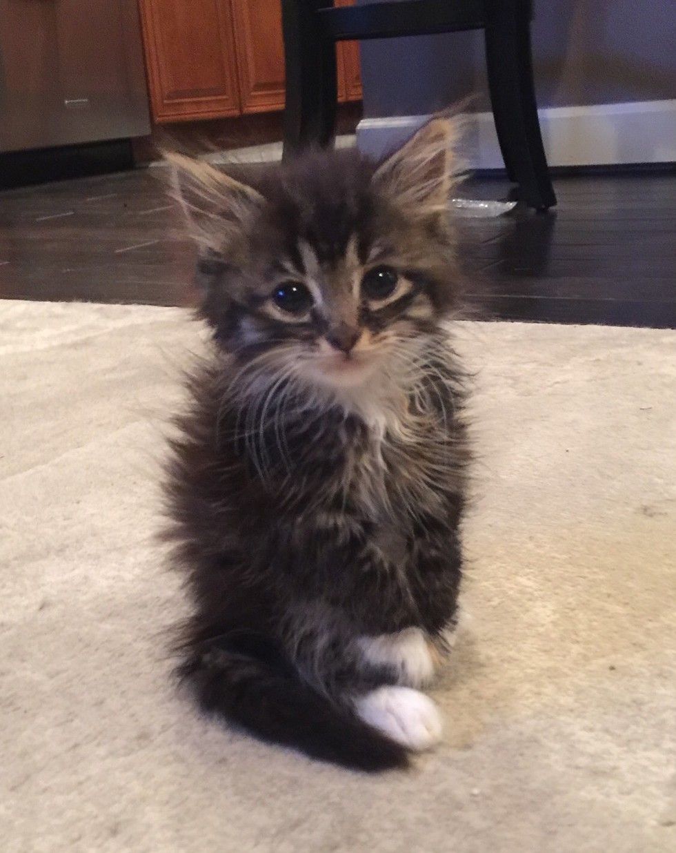 "She is starting to run a bit; albeit very awkwardly. She is gaining weight steadily and we will be working with NoVa Cat Clinic to develop physical therapy treatments to help her as she grows."