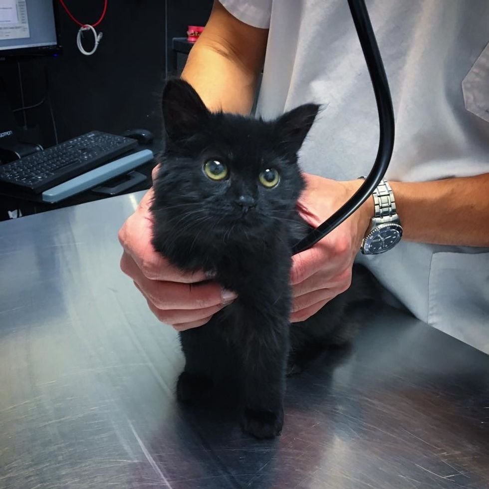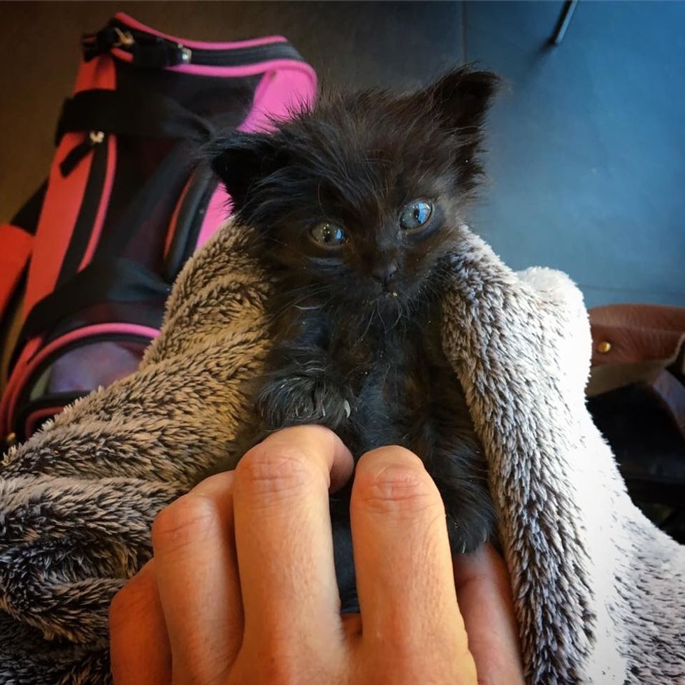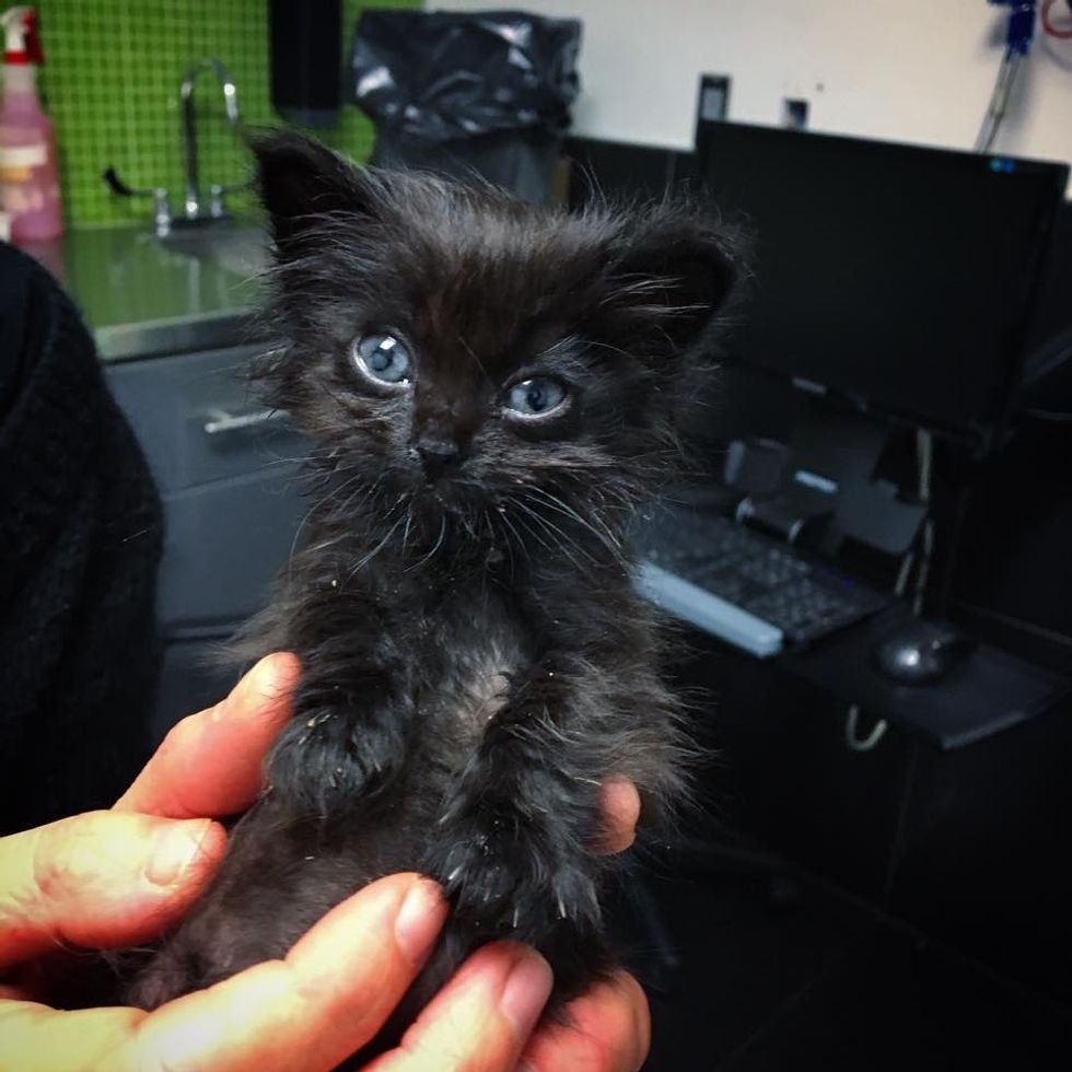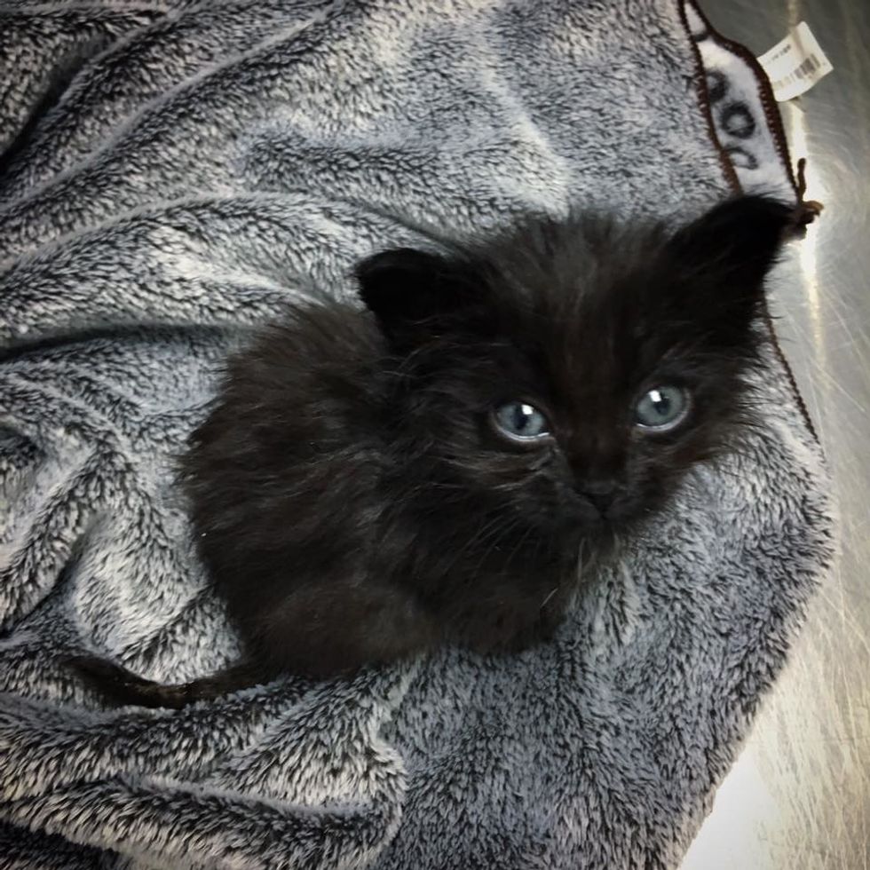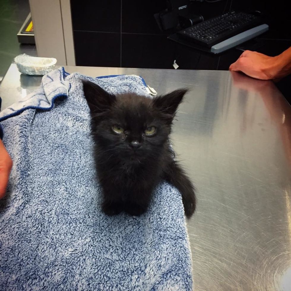 A kind-hearted woman saw the kitten lying outside all alone. After waiting for the cat mother but to no avail, she picked her up and drove an hour to the rescue group in Montréal so the kitten could get the help she desperately needed.