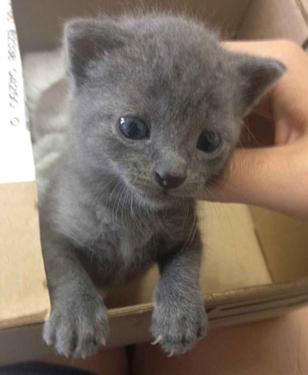 "I was working at a vegetarian restaurant downtown. A customer came in and told us there were some baby kittens in the parking lot (really, it was just a dirt lot next to the restaurant)," said Adriana via reddit. "Our manage went and put them in a box behind the restaurant. It used to be a house, so they were in a fenced in, grassy area.
