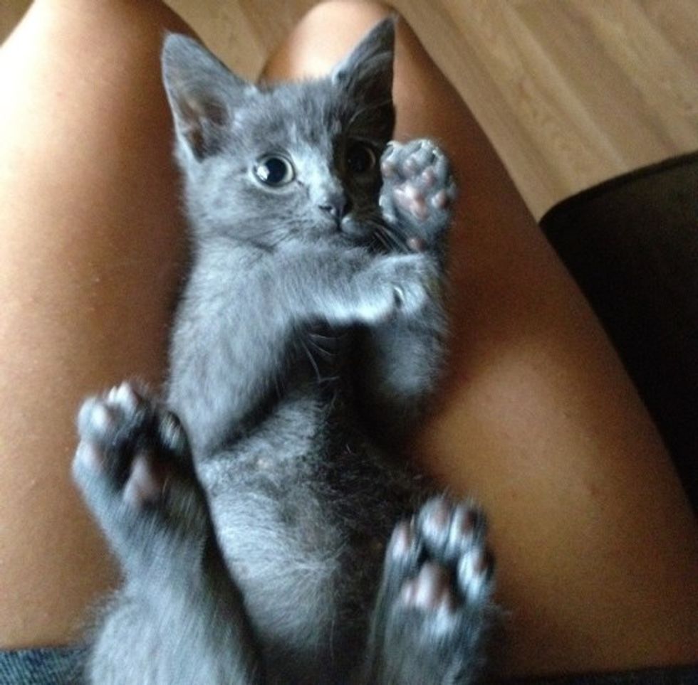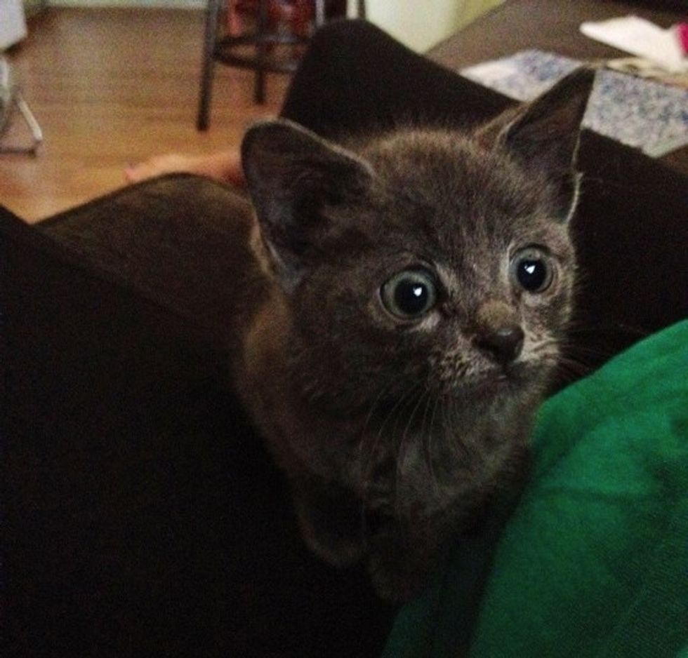 When she was told that the kitten might not survive, Adriana didn't give up hope. "When I took him to the vet they told me that he was two weeks old and likely wouldn't live. Not because he was ill, but because he was so young, and I don't think the vet had confidence in me. I had to fee him every 4 hours, and make him poop/pee in the first few weeks but he is super healthy and happy now. He constantly want to be held, and likes to sit on my shoulder when I'm up. His name is Oatmeal," she added.