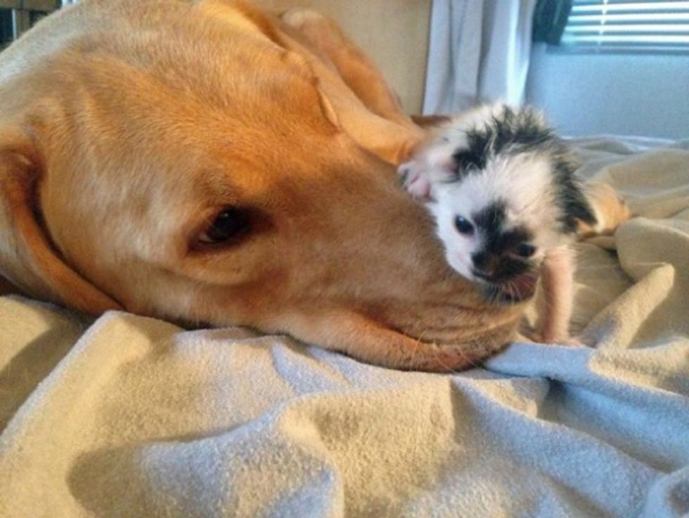 "Panda is now safely with an experienced foster volunteer who is keeping him fed and warm. Plus, Panda has a new 'big brother' to help keep watch! Meet Shadow, the foster’s dog, and he is very serious about making sure this kitten is safe and happy," Helen Woodward added.