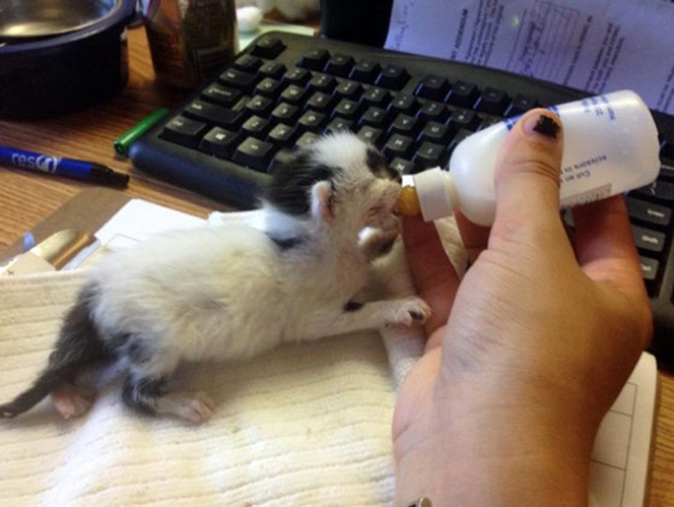 Meet Panda, a tiny baby kitten found curled alone on the sidewalk.