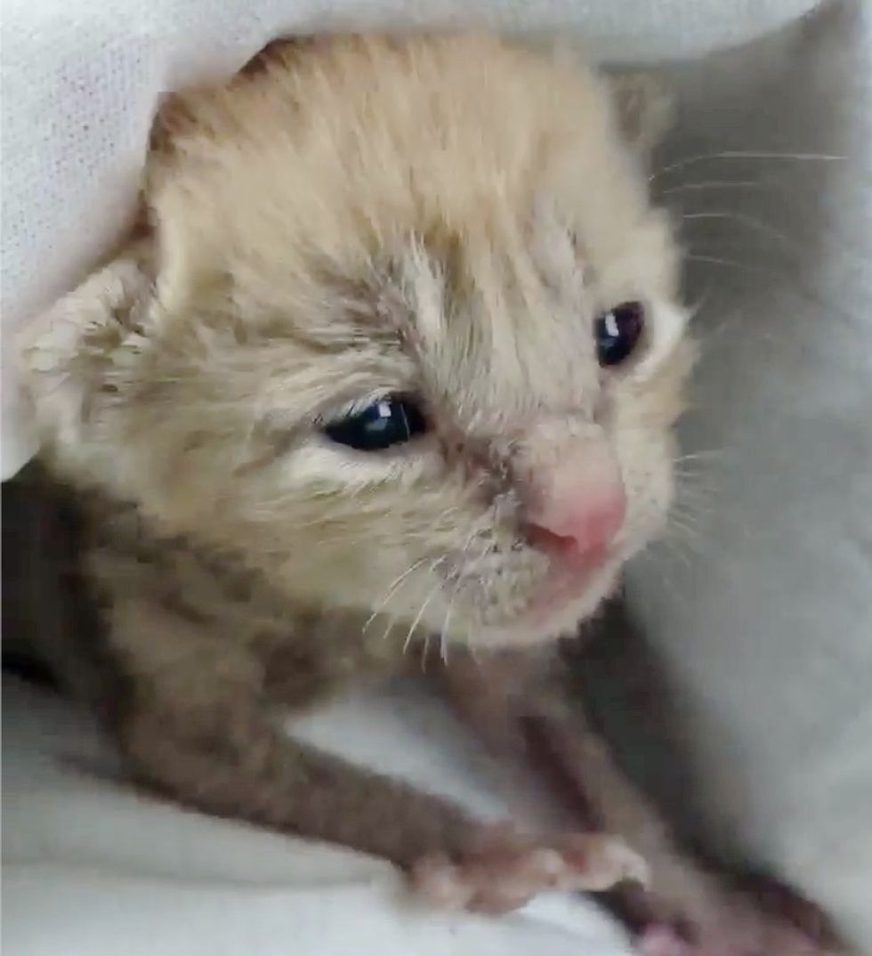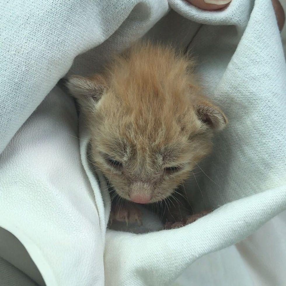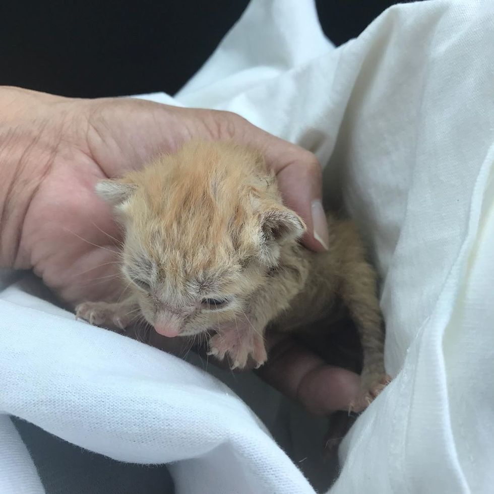 Early this week, a construction worker was in Boca Raton, Florida when he heard a kitten meowing. Upon investigation, he discovered a ginger kitten soaked in rain water, crying nonstop. They couldn't find the mother cat and the kitten was in desperate need of bottle feedings.