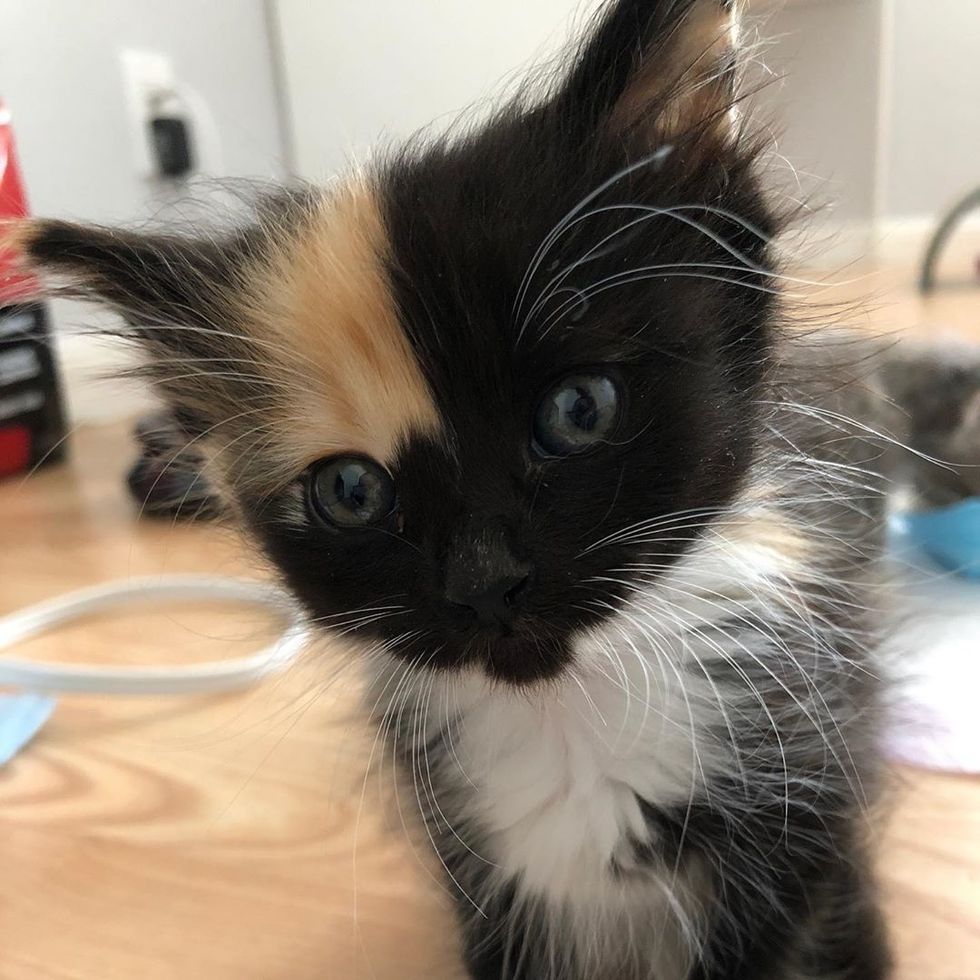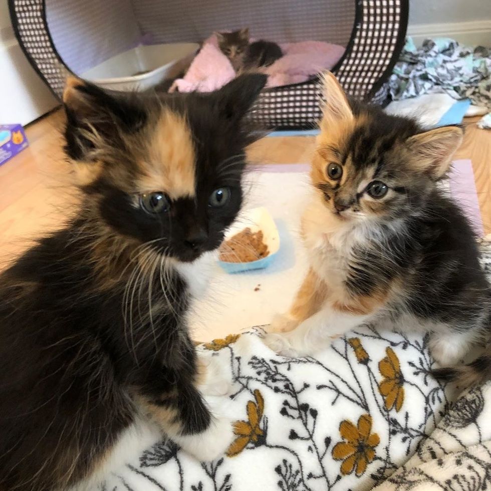 Tanooki, the little tortie, arrived with her two sisters, Daisy and Peach, and brother, Bowser.