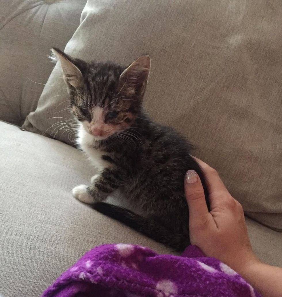 Over the next week, she followed a 2-hour feeding schedule and gave the kitten antibiotics and eye drops to keep her eyes clean.