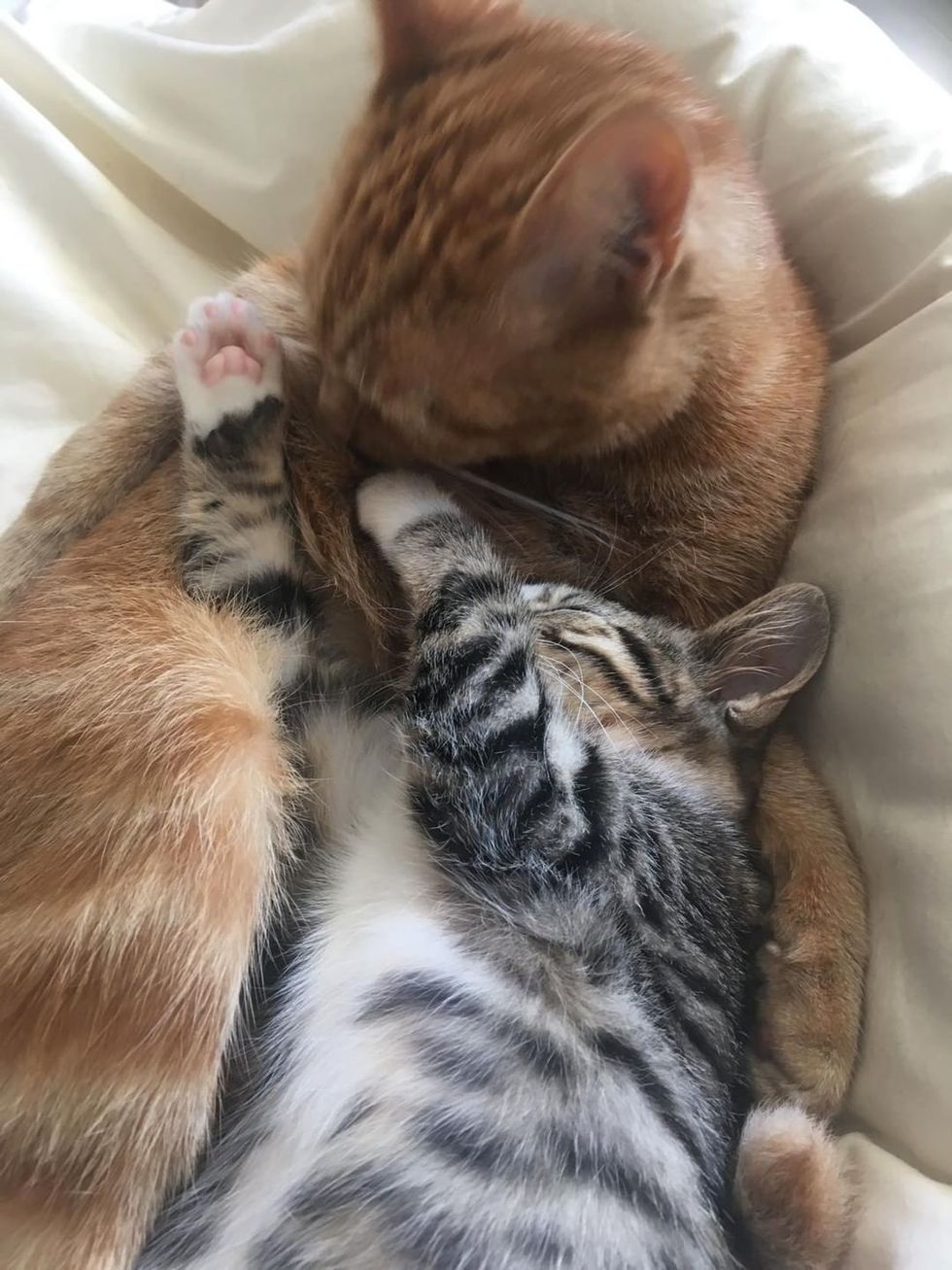 Jodie has found her a perfect home with a feline sibling to cuddle with. The two have become inseparable friends.