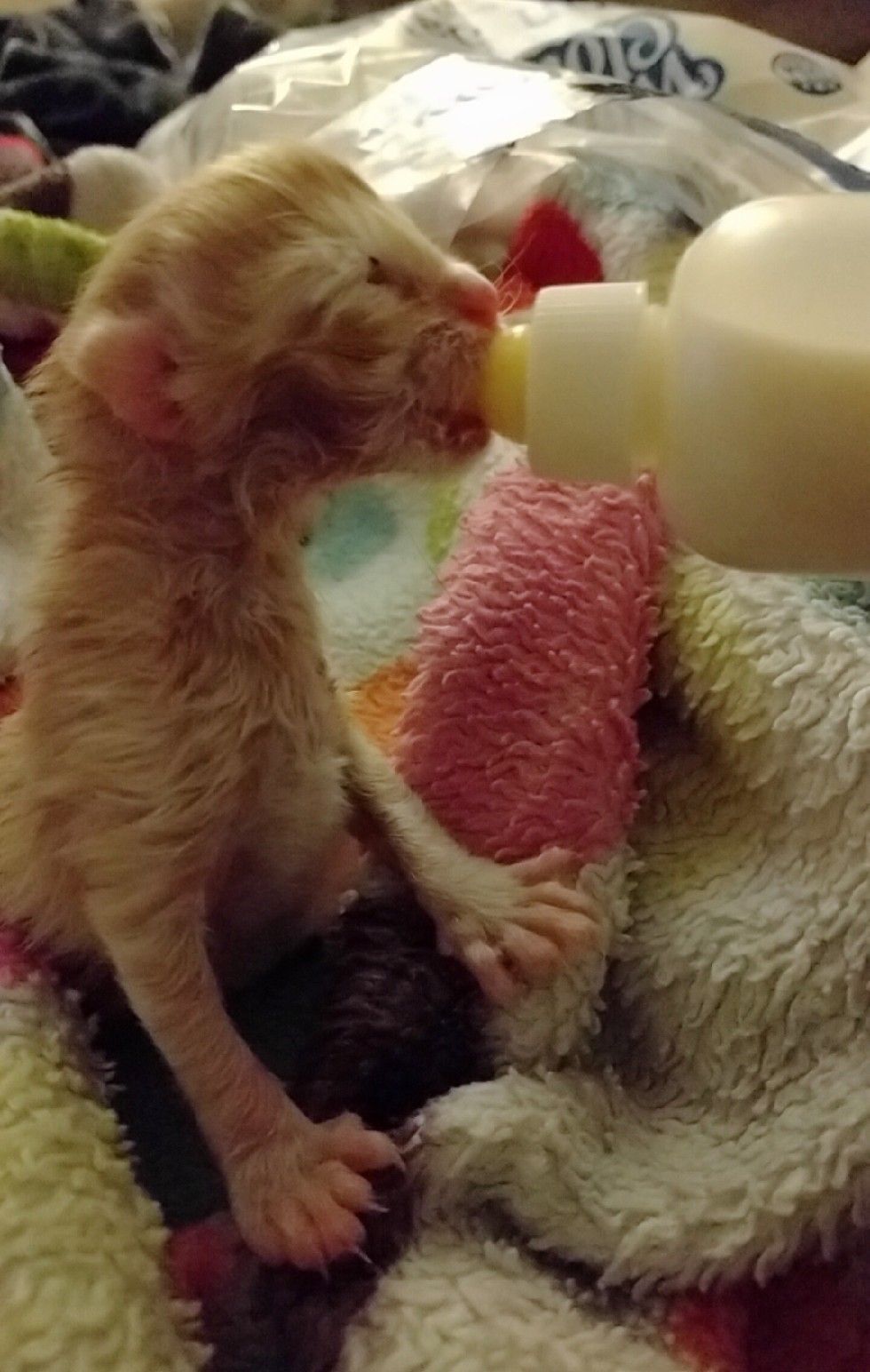 "I got him when he was only a day or two old. Eyes closed, umbilical cord attached," she said. "This was my first bottle baby, so it was a great learning experience for me!"