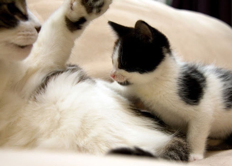 During his foster care, Butter the cat became his foster mother. She babysat him and kept an eye on the little fuzzball to make sure that he was OK.