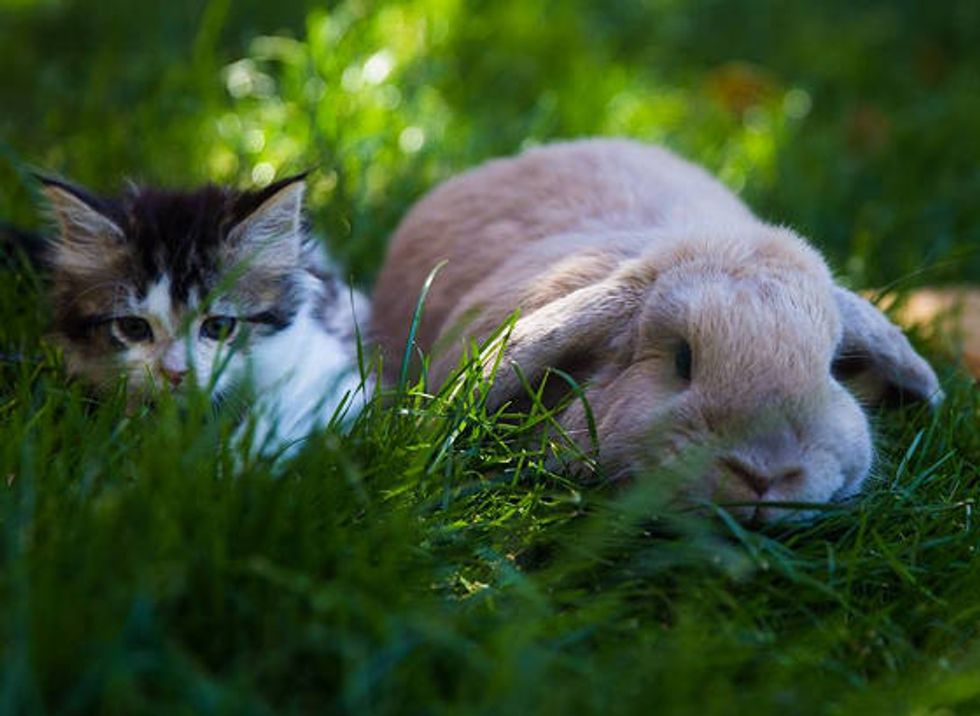 A little kitten came to The Wellington SPCA without a home but later found a rabbit who would play with him and teach him how to be a cat. Pikachu the rabbit loves foster kittens. "Pikachu is so placid, he just flops around while (the kittens) climb all over him and nom on his ears. He’s an only bunny so I think he likes the attention,” Frances the foster mom wrote via reddit. She took the two buddies to a park the other day, and Pikachu demonstrated to his foster kitten how to pounce.