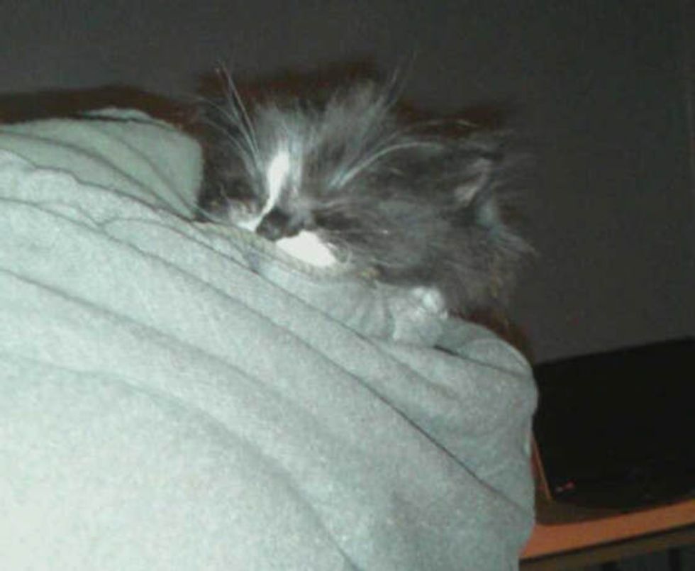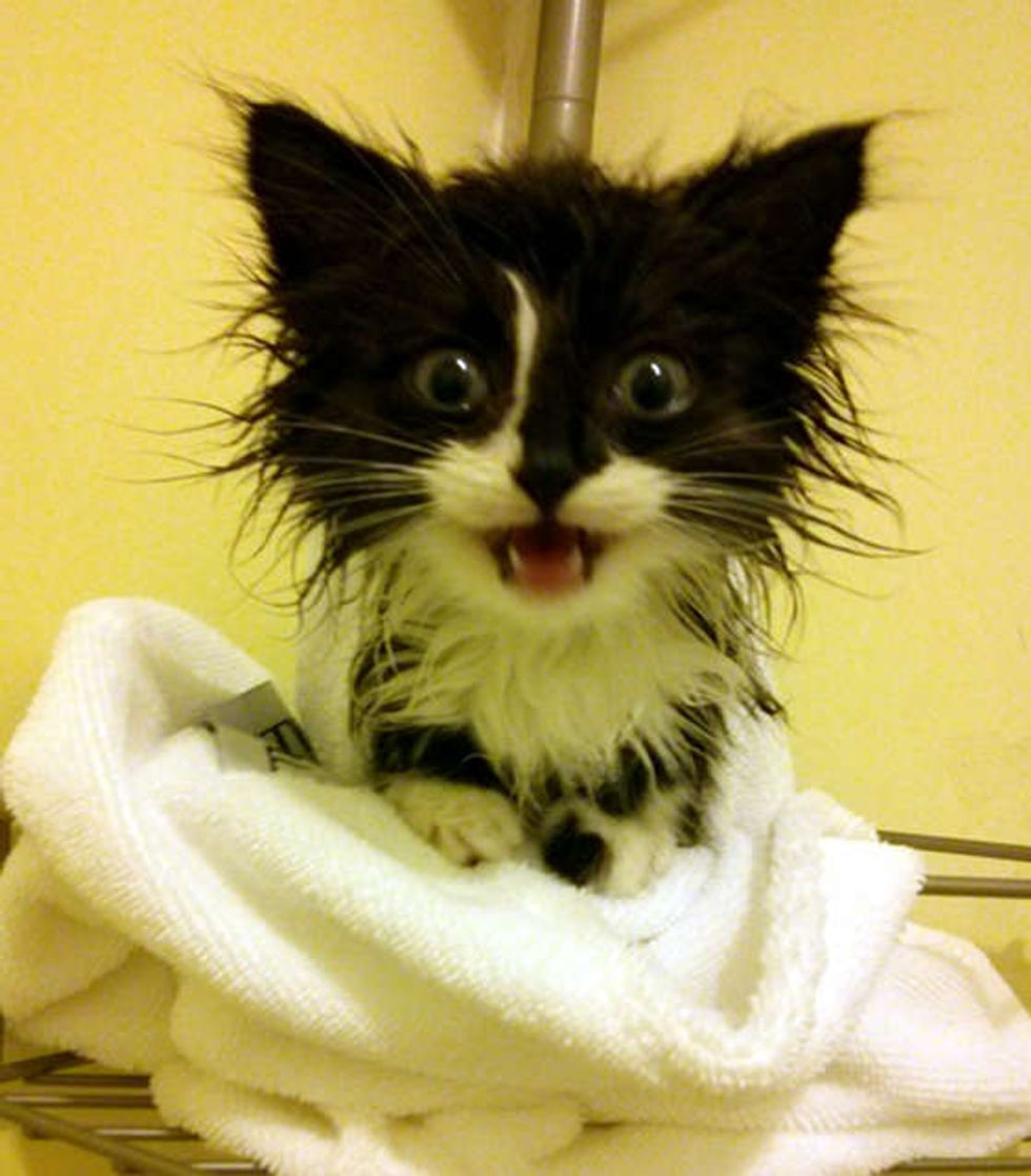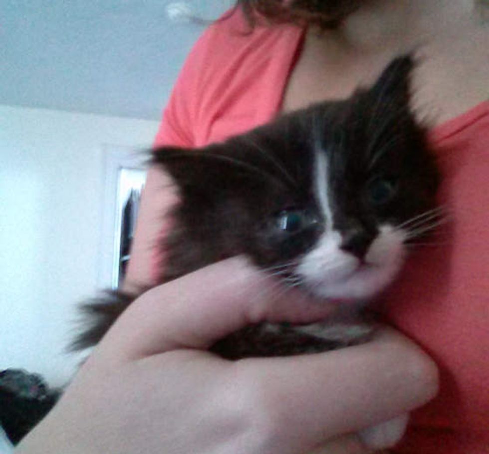 "I found this little one, meowing, in a corner by my back porch." (imgur)