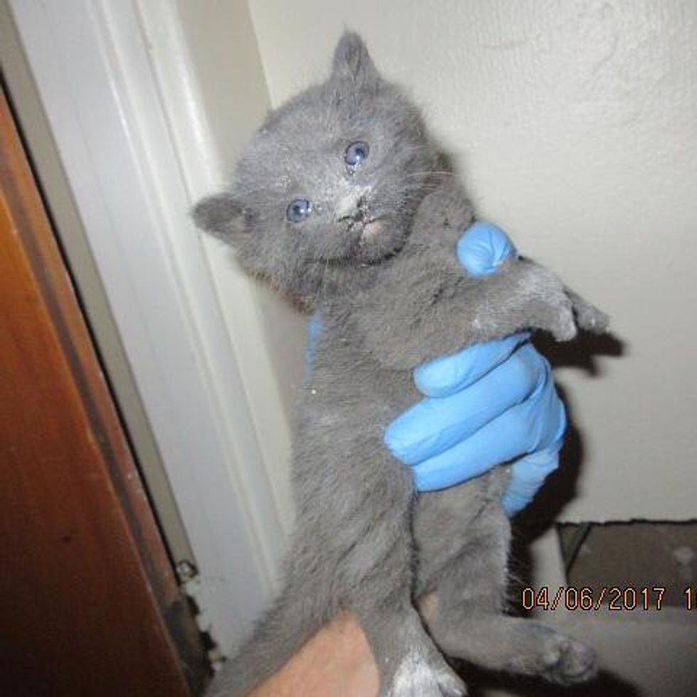 The kitten was displaced in the wall possibly after the cat mother moved her litter to the attic and somehow the kitten fell into the wall, according to the shelter.