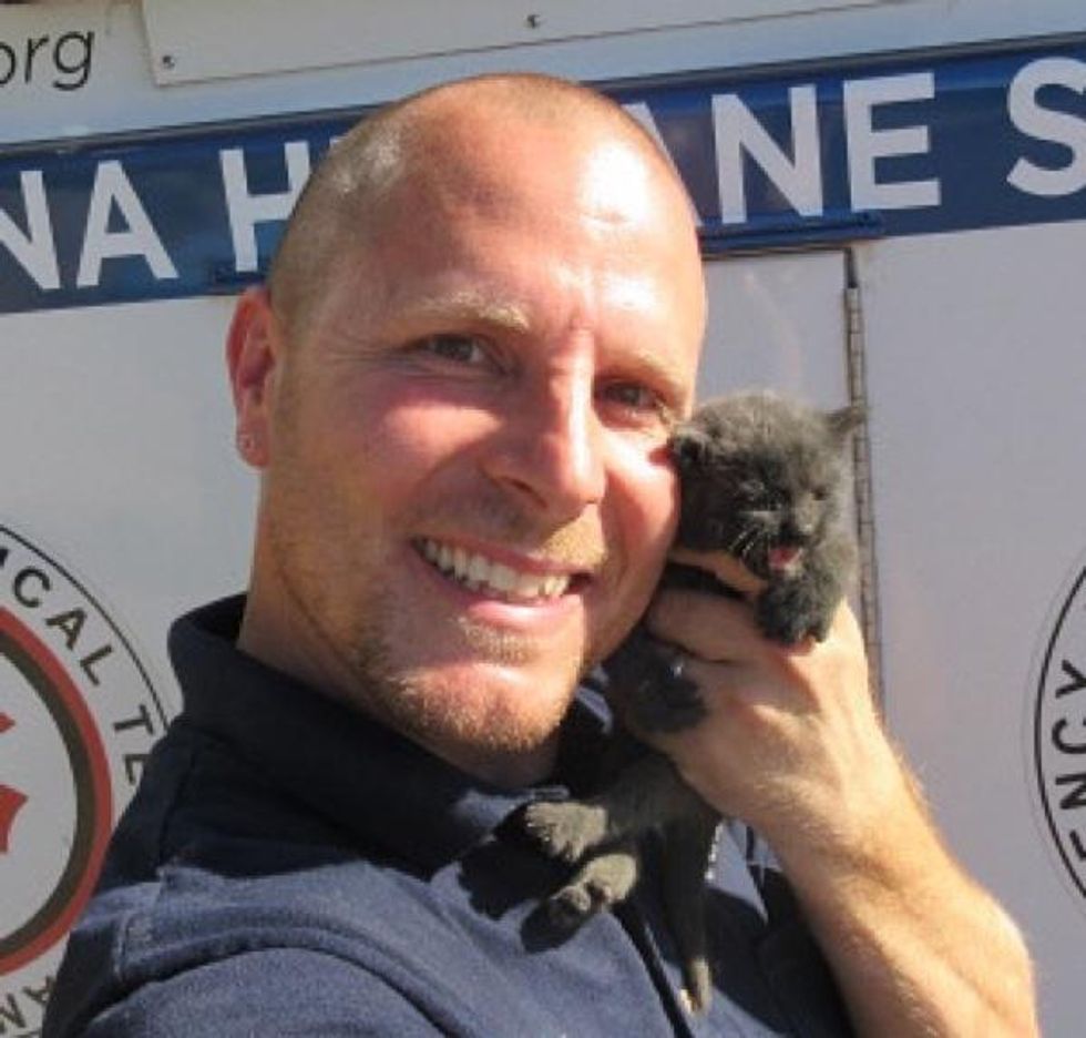 "After cutting through drywall and concrete, (Andy) was able to rescue this sweet kitten trapped inside of a wall."