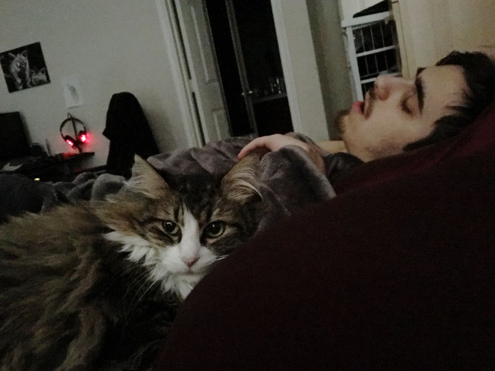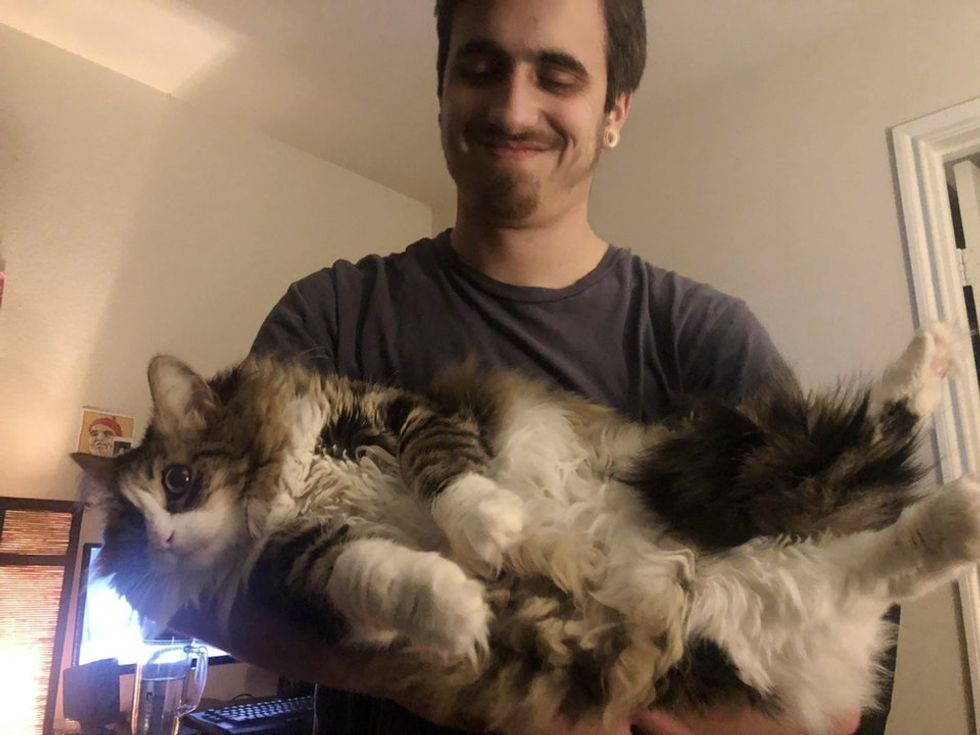 The guy who grudgingly accepted his wife's fluffy cat, is now in love with her.