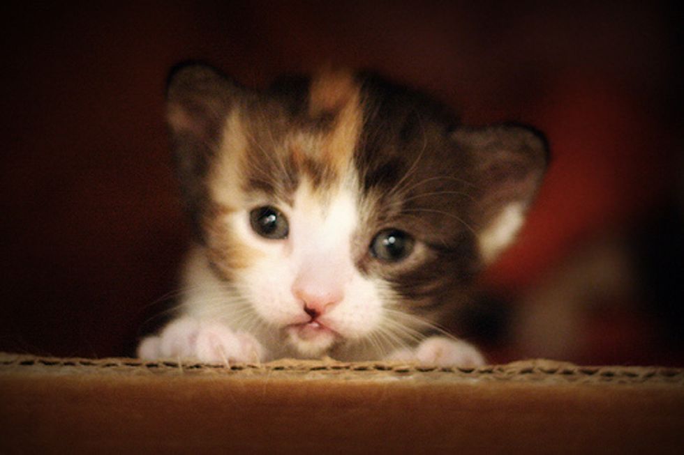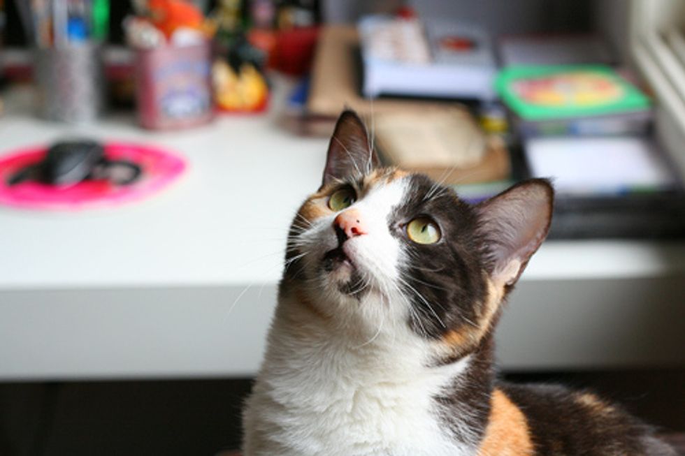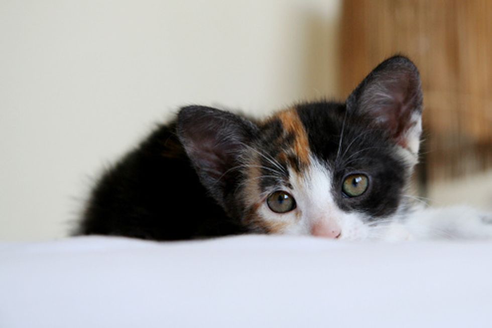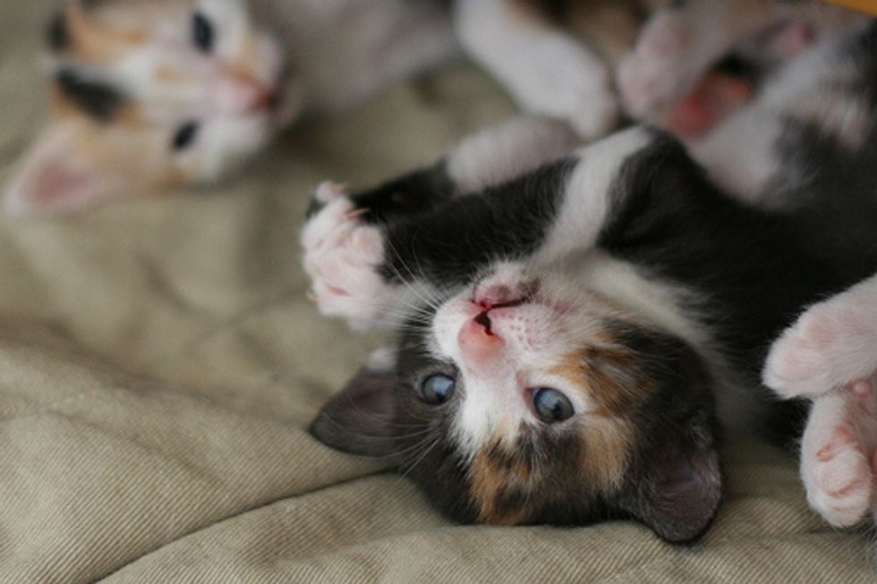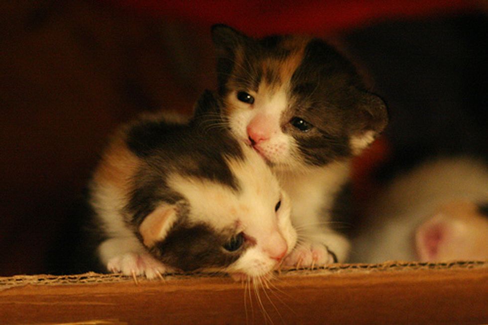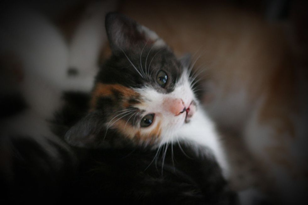 We decided that we were going to give all the babies up for adoption. It wouldn't be difficult: one yellow guy and four calico girls, but Maya stood out to my boyfriend and me. When she started to learn to walk, we immediately fell in love. She used to spend much more time with us then with the other cats. So we thought "Well, we'll keep her. Just her. And we'll find good homes for the other ones." Then, Maya became our 9th cat.