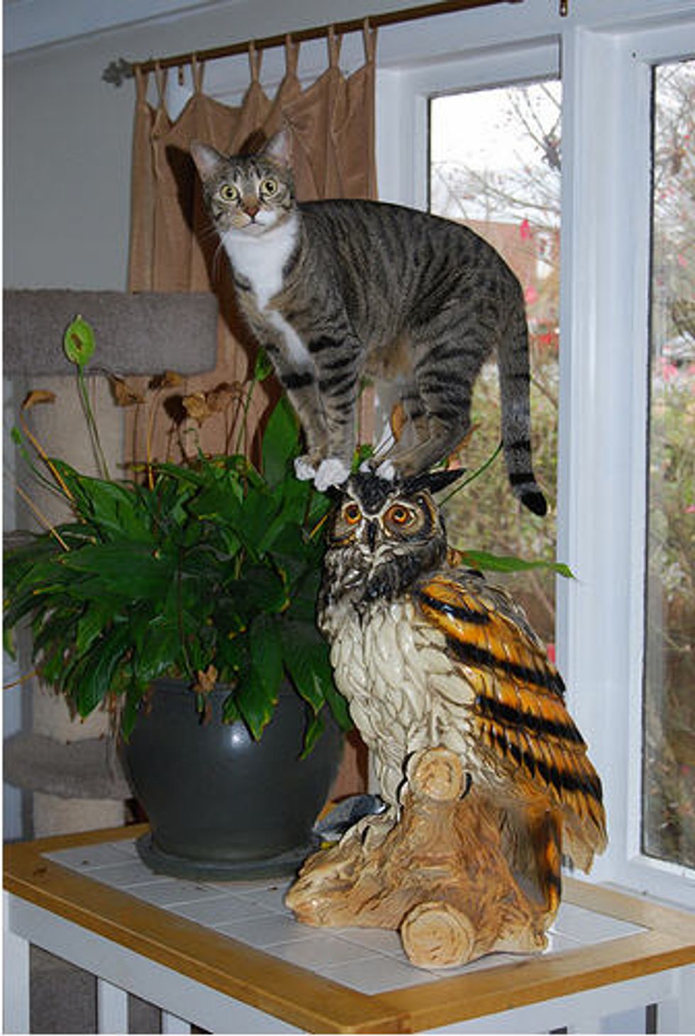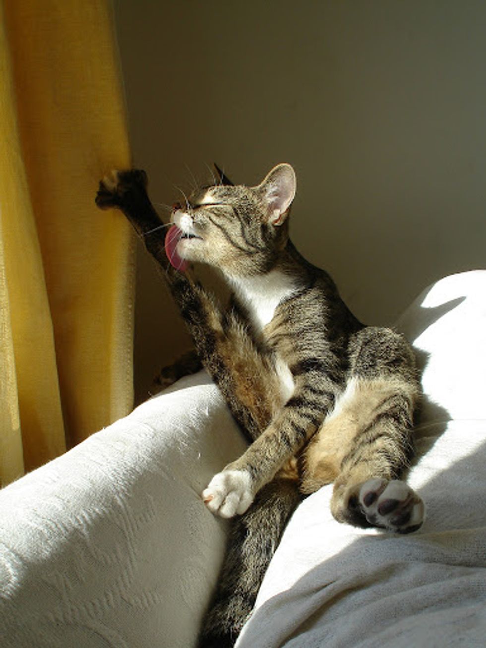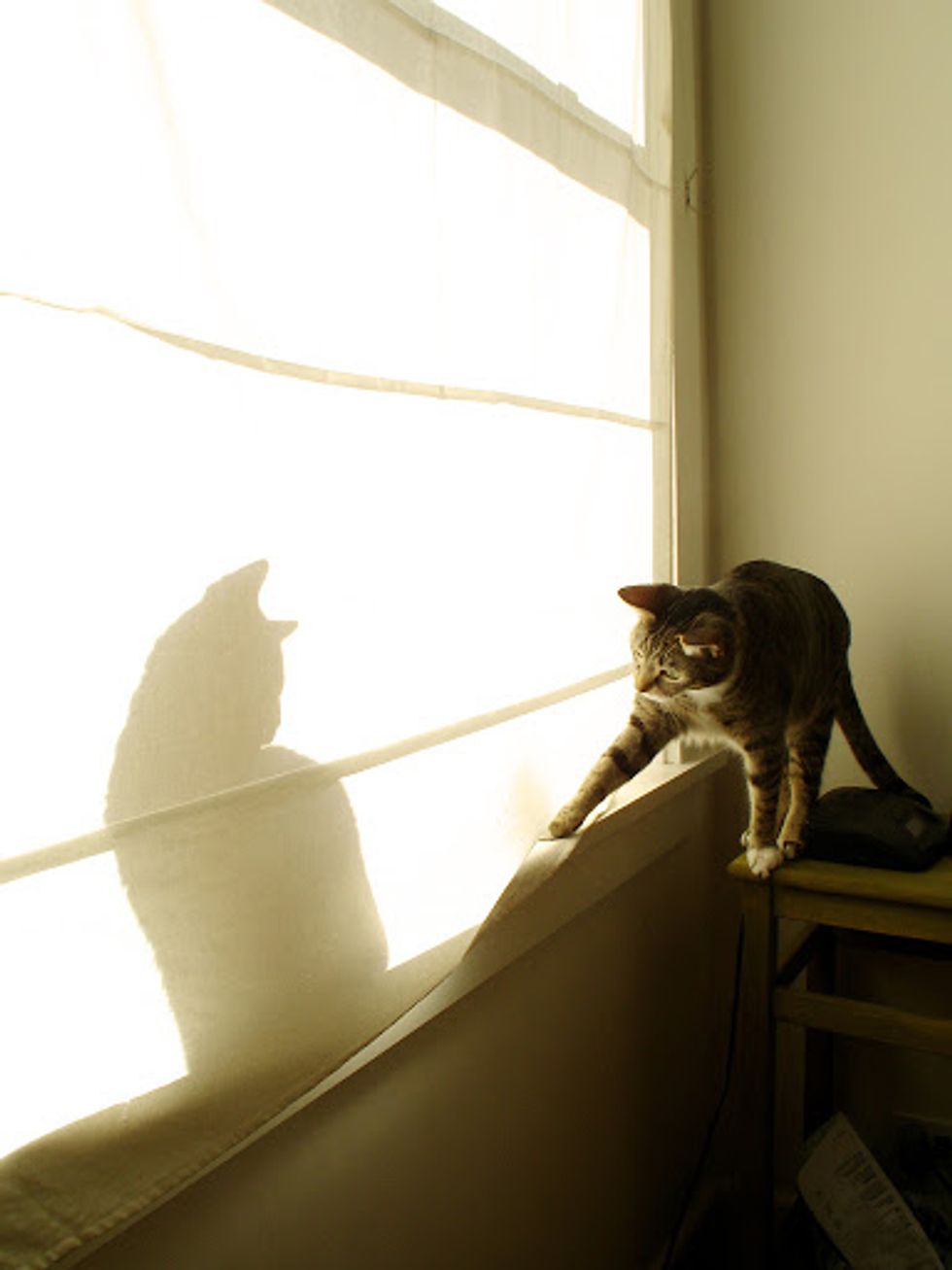 I've had cats all my life but Henry Jones is unlike any other cat I've ever lived with. He climbs hanging clothes and hat racks, curtains and roman blinds, doorways and doors. You'll be in a room and sense that you are not alone and then realize he has crept into a cabinet and is watching you from its depths. He's broken every lamp that doesn't have a weighted base. He loves to creep under laundry and damp towels left lying around and if you leave a jacket hanging on a chair, he'll pull it down and then burrow inside it and creep down inside a sleeve for a nap. There's no way to safely change the sheets on a bed while he's in the room.