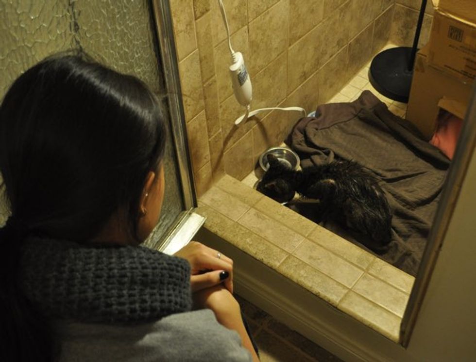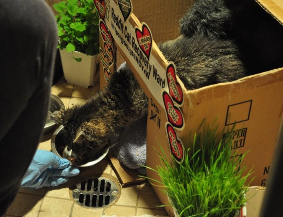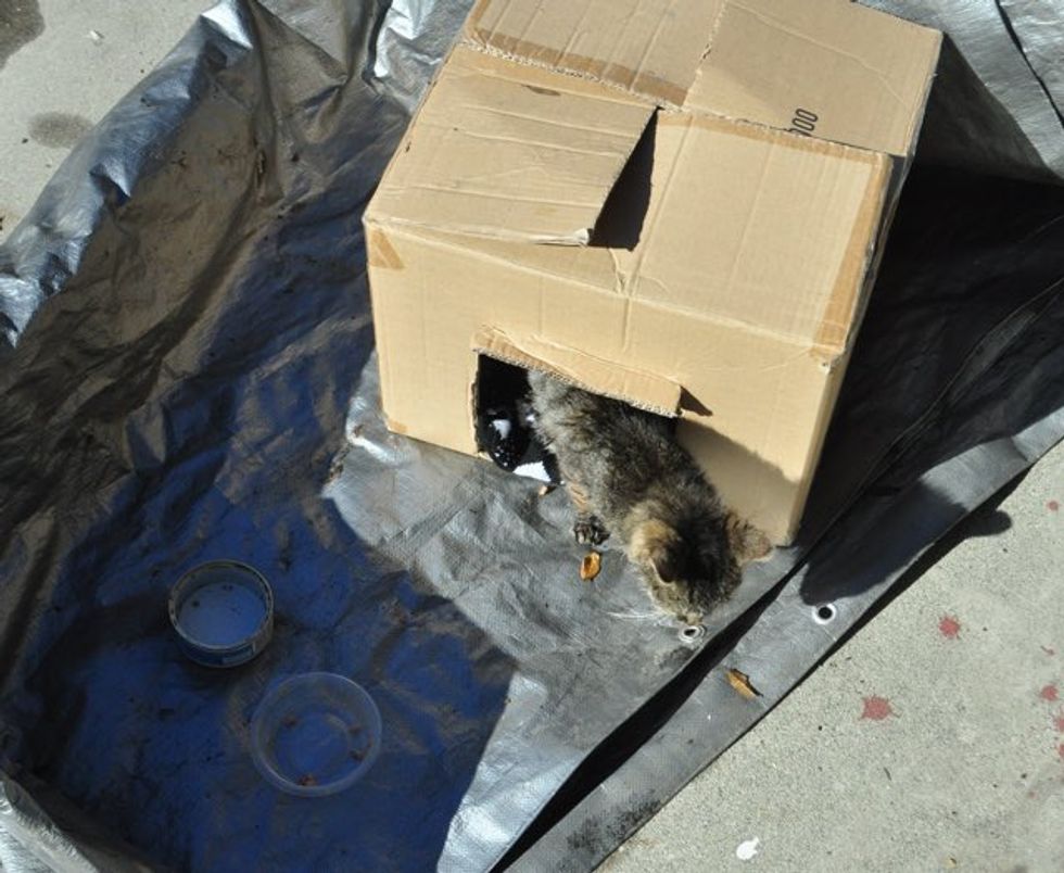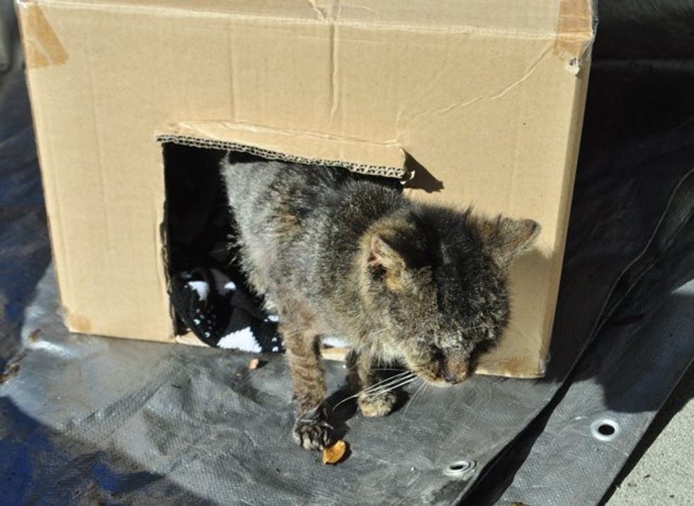 "Despite the risks, we created an outdoor shelter made of cardboard to keep it from the cold. Some more food and water, and the cat seemed to be thankful."