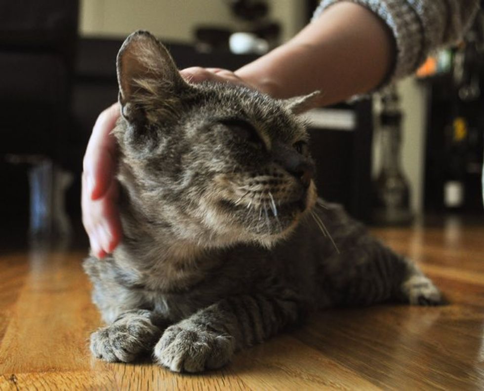 "Mr. Cat shows his affection and gratitude for a little head scratching. At this point we know that he's happy and comfortable in his new environment."