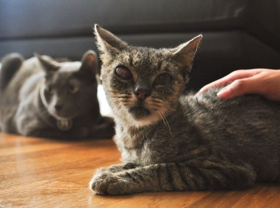 "As time passed on, we knew Mr. Cat was getting healthier. The parasites were dying and he was gaining weight. However, one major thing we wanted to overcome was his blindness," they added. "Lesions and scabs continue to fall off as we aggressively treat the scrabie and mite infestation on Mr. Cat."