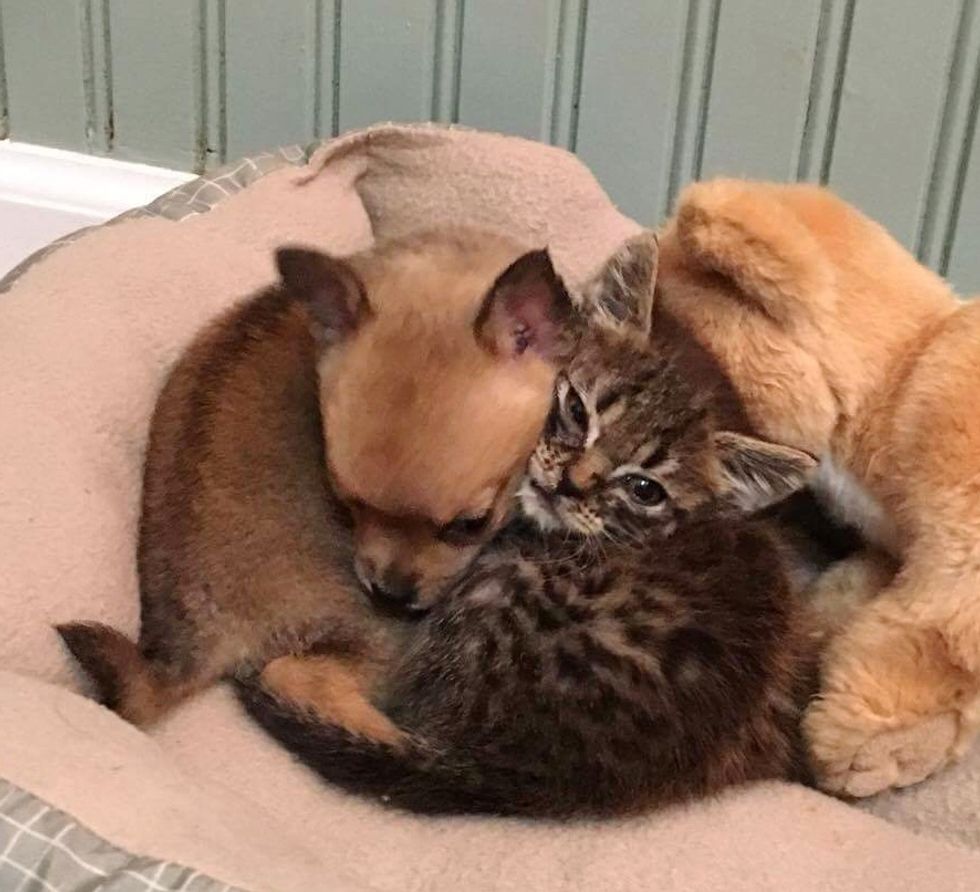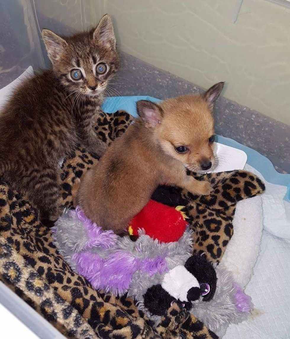 "The kitten was found as a stray and the puppy belonged to a very kind man that came to us seeking help with placement of three pups that week before," Lindsey Huffman of SVASC told Love Meow.