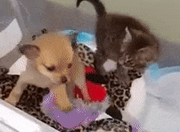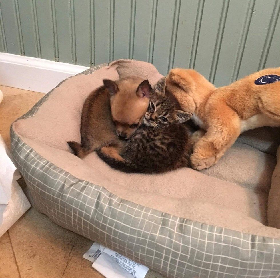 A orphaned kitten and a rescue puppy found each other at Shenandoah Valley Animal Services Center, a rescue group in Lyndhurst, VA, and became each other's family they never had.