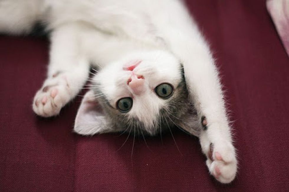"He is our little prince and has lived with my boyfriend and I for about a month. He is the cutest thing ever and we spend hours watching him sleep and play every day. He is so lively, jumping everywhere, stealing tissue and paper out of the trash can, hiding inside my purses and bags and he's a big purr-er. He purrs even when he's playing or running around."
