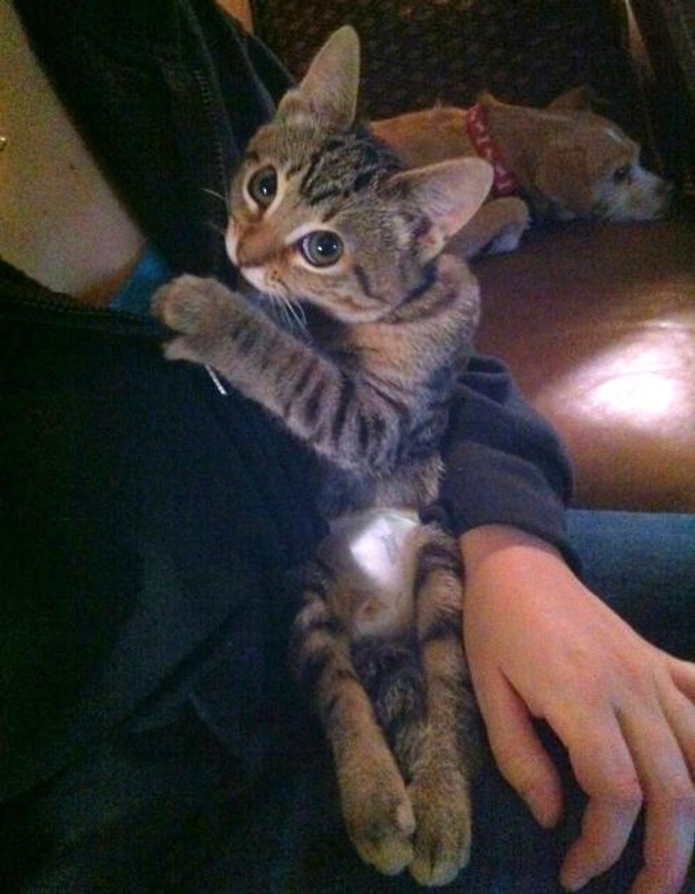 The lady at this point began crying, saying how she didn’t know what to do, this kitten was such a happy, carefree kitten and she didn’t want to put her down. Her husband had told her she could not keep her any longer because they already had four cats.