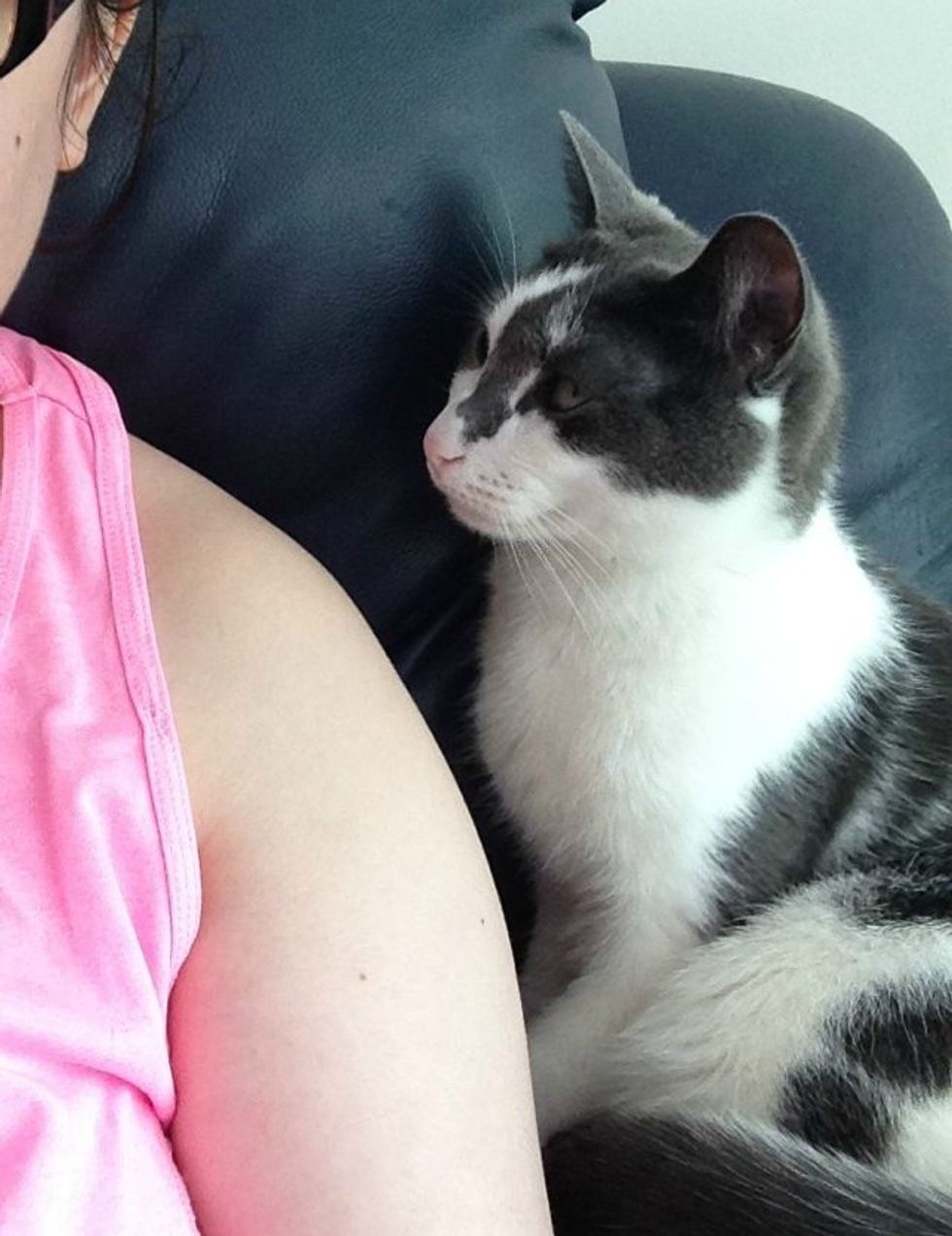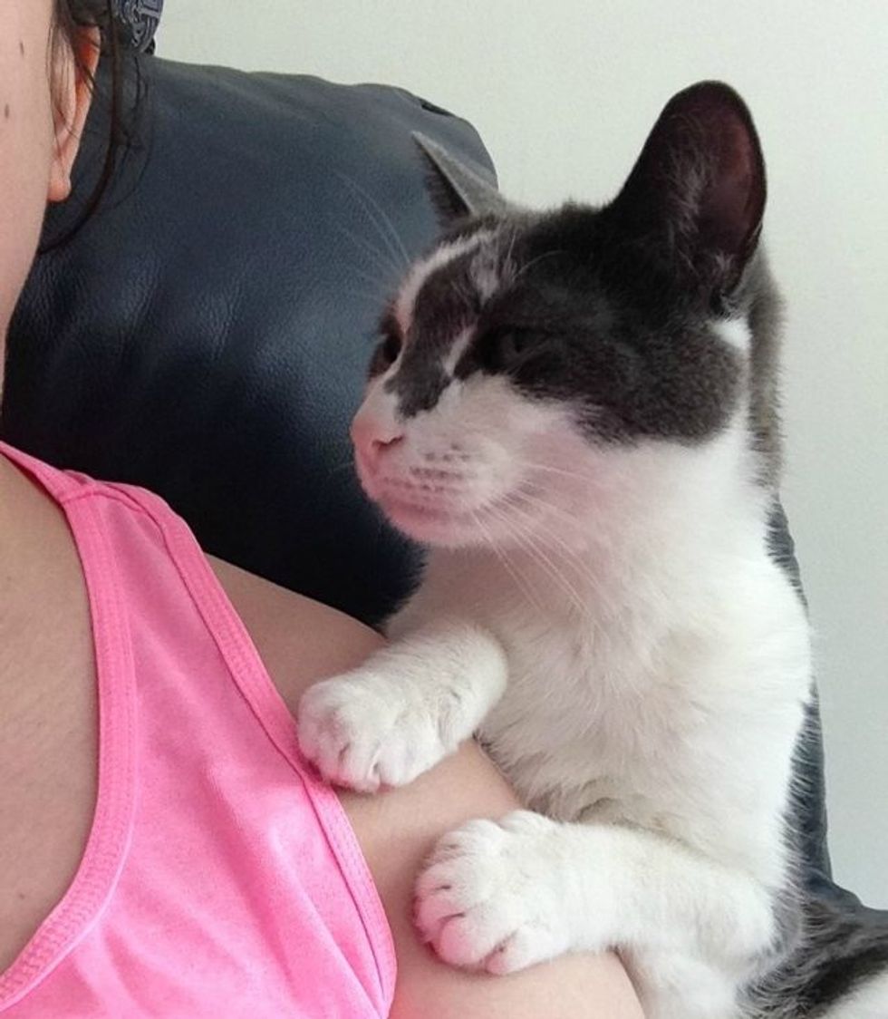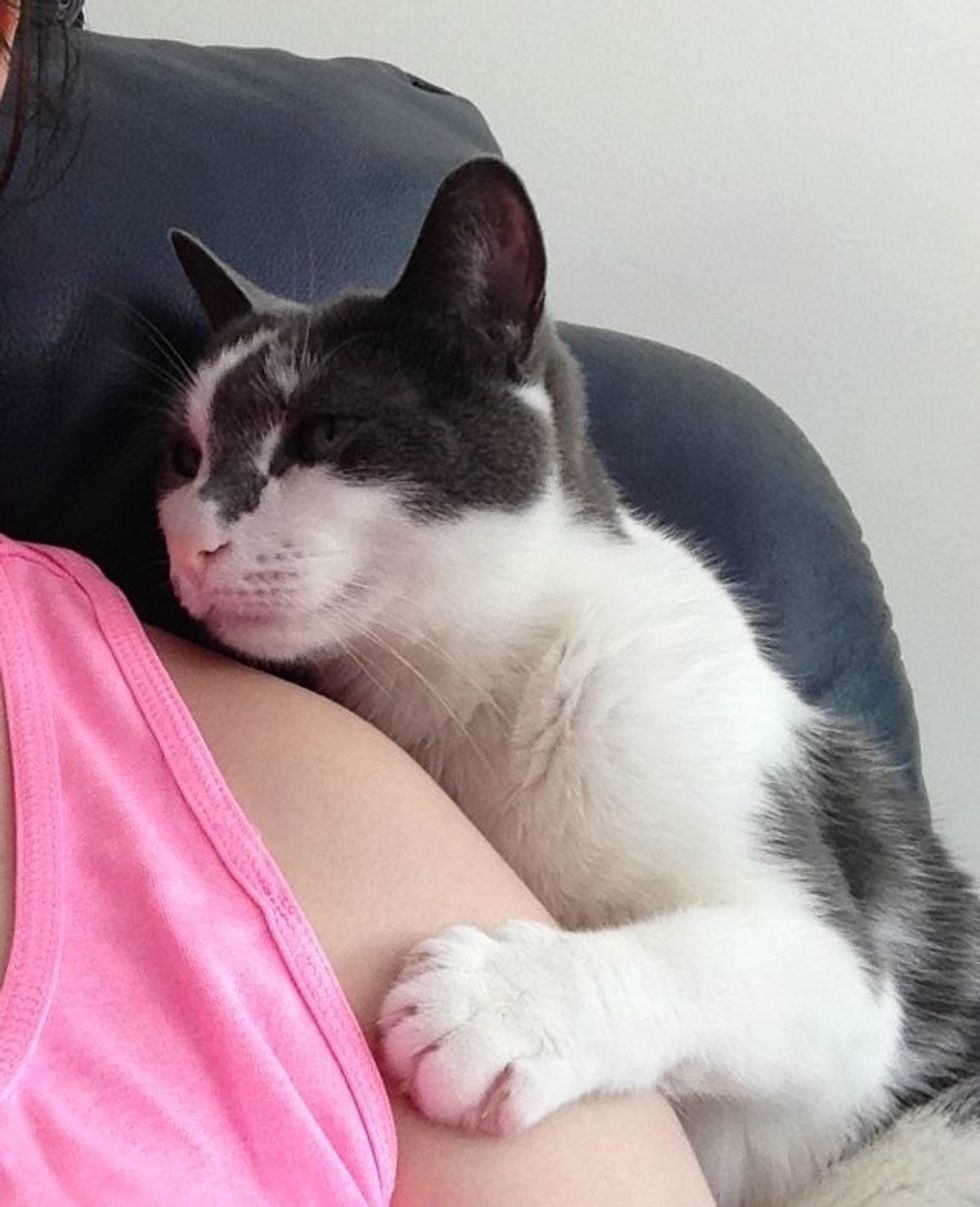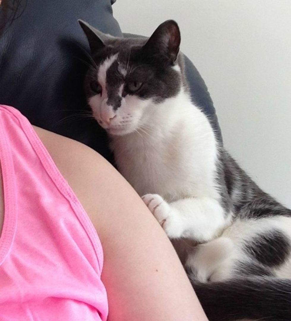 Perseus is a rescue kitty who loves his mom very much. "My rescue kitty, Perseus, trying his hardest to get my attention. It worked," said Perseus' human mom.