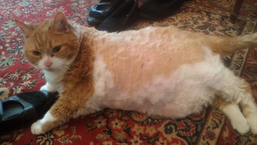 Dawn and her husband were devastated when they saw the state she was in. Jonesy could barely climb out of her basket to get to her food bowl and the litter box due to all the weight she was carrying. She couldn't groom herself and her fur was matted from her neck to tail.