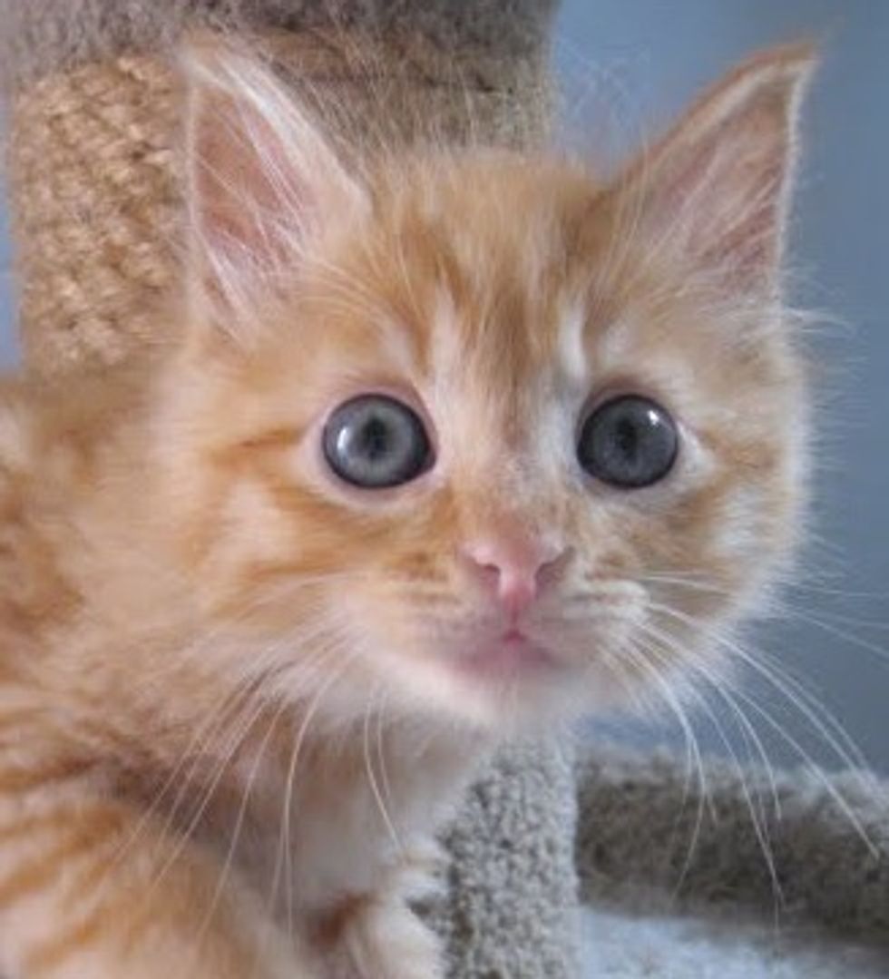 This little ginger foster named Lucy is making some happy slaps on the computer screen. She is watching a video of her and another foster named Lilo fighting over a cat post. I think Lucy is trying to help herself in the video :). These lovely kitties are being fostered by Sue of Pitter Pats of Baby Cats.