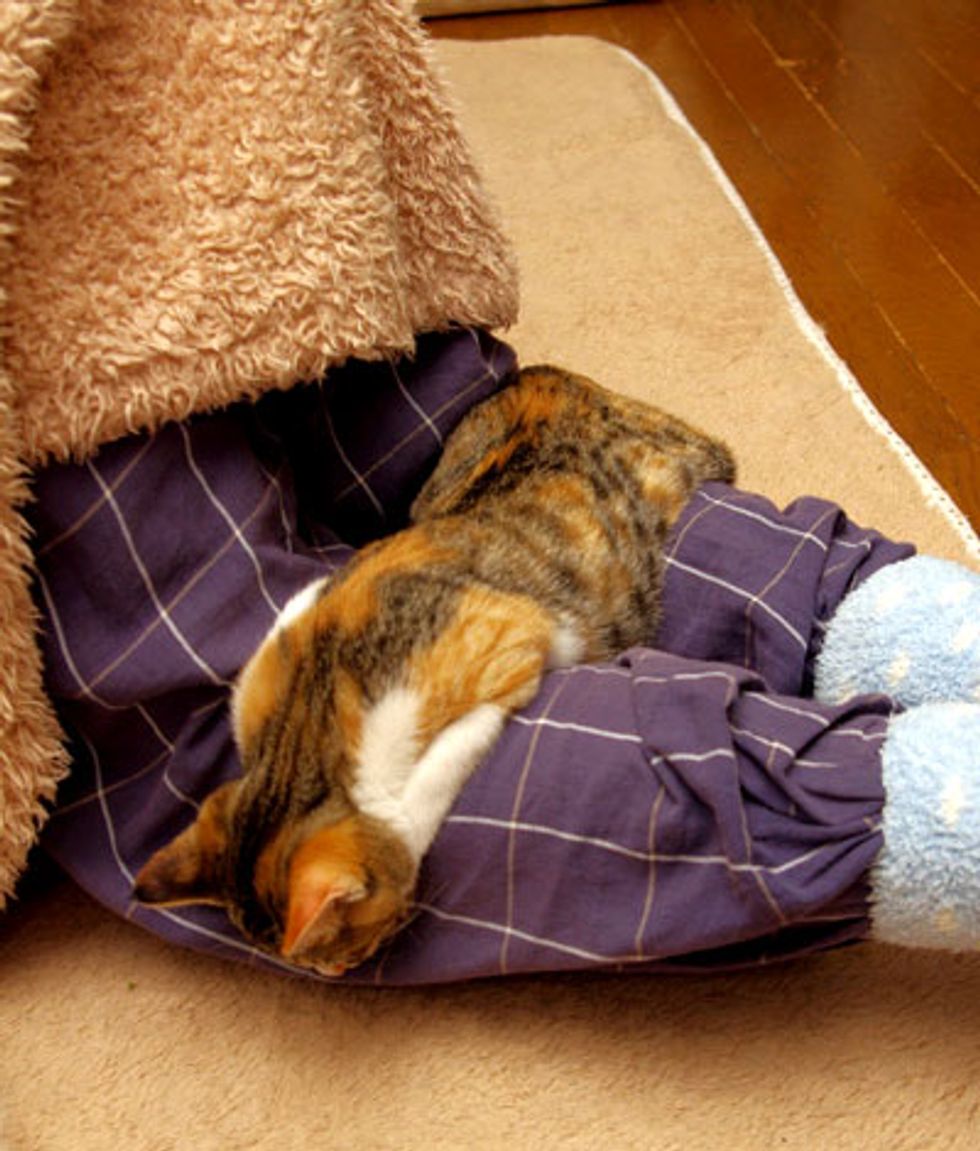 Castella the tortie melts on her hooman's legs to catch some Zzzs. Her hooman finds herself unable to move for the entire nap time.