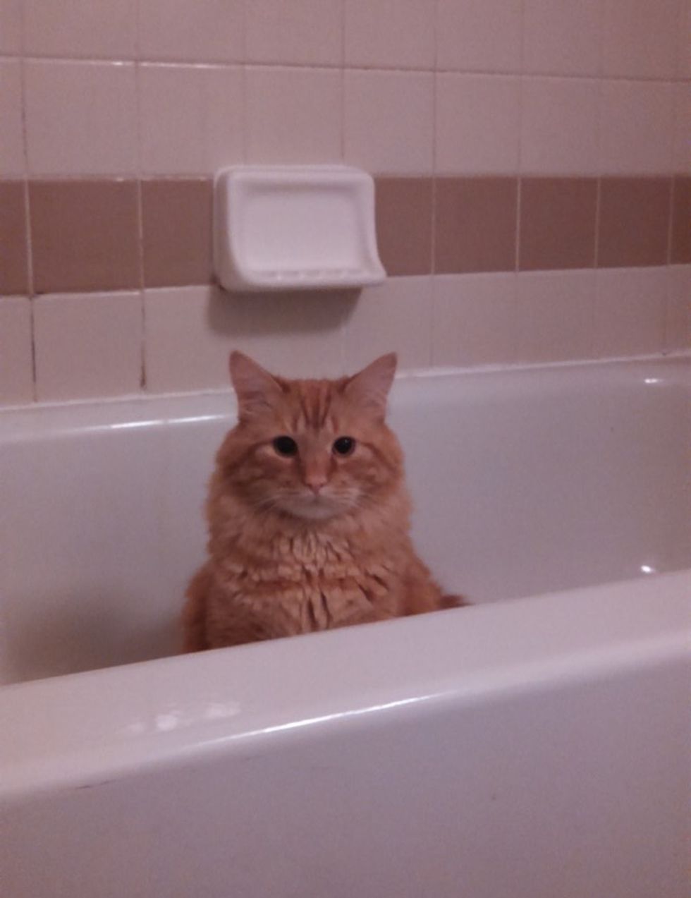Soaking in the tub when suddenly... (Phil the cat)