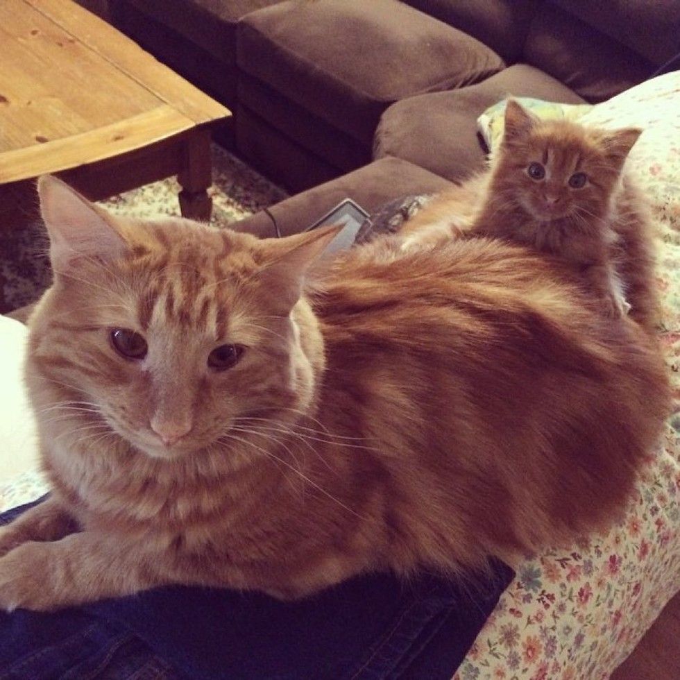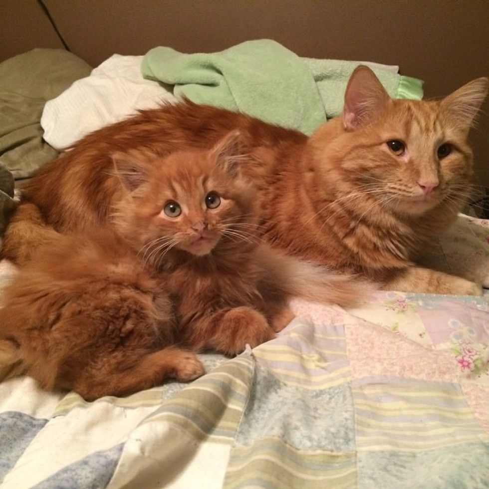 The ginger boy followed his lookalike big buddy around everywhere he went. Evin washed and groomed him and gave him all the love and snuggles.