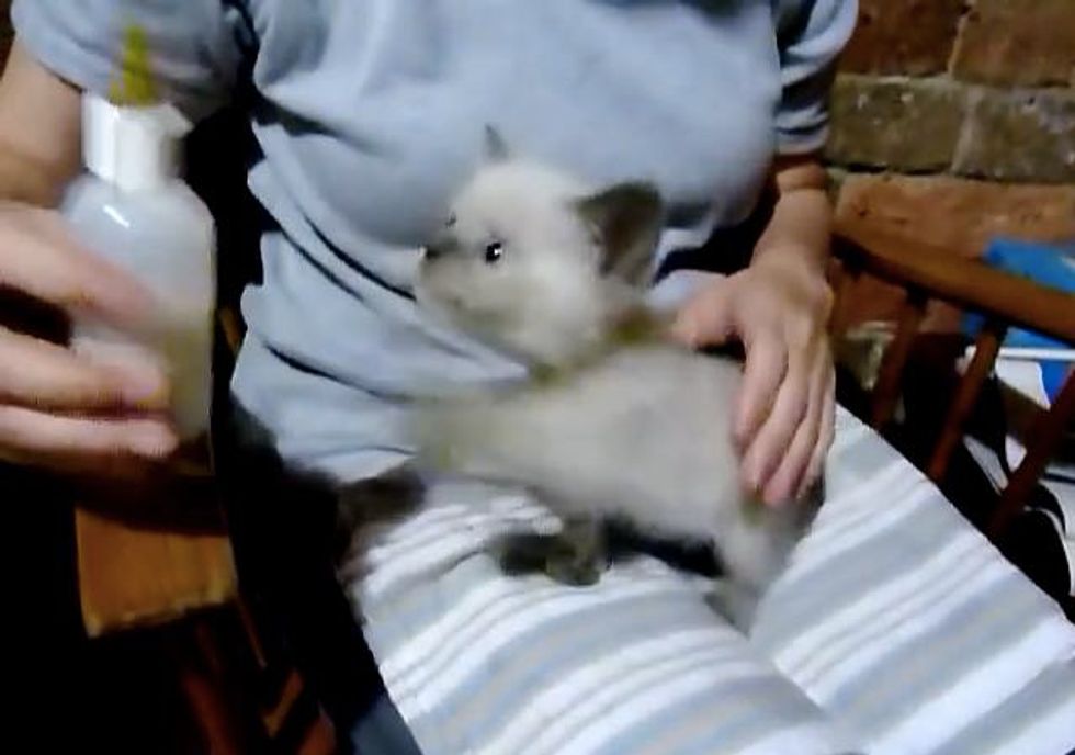 Kitty goes all quiet once she gets her bottle!