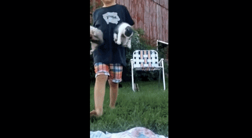 Watch as this little guy makes his best attempt at corralling a bunch of cute kittens: