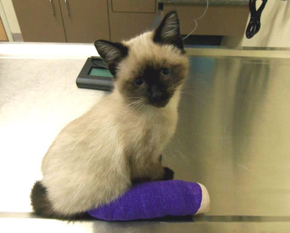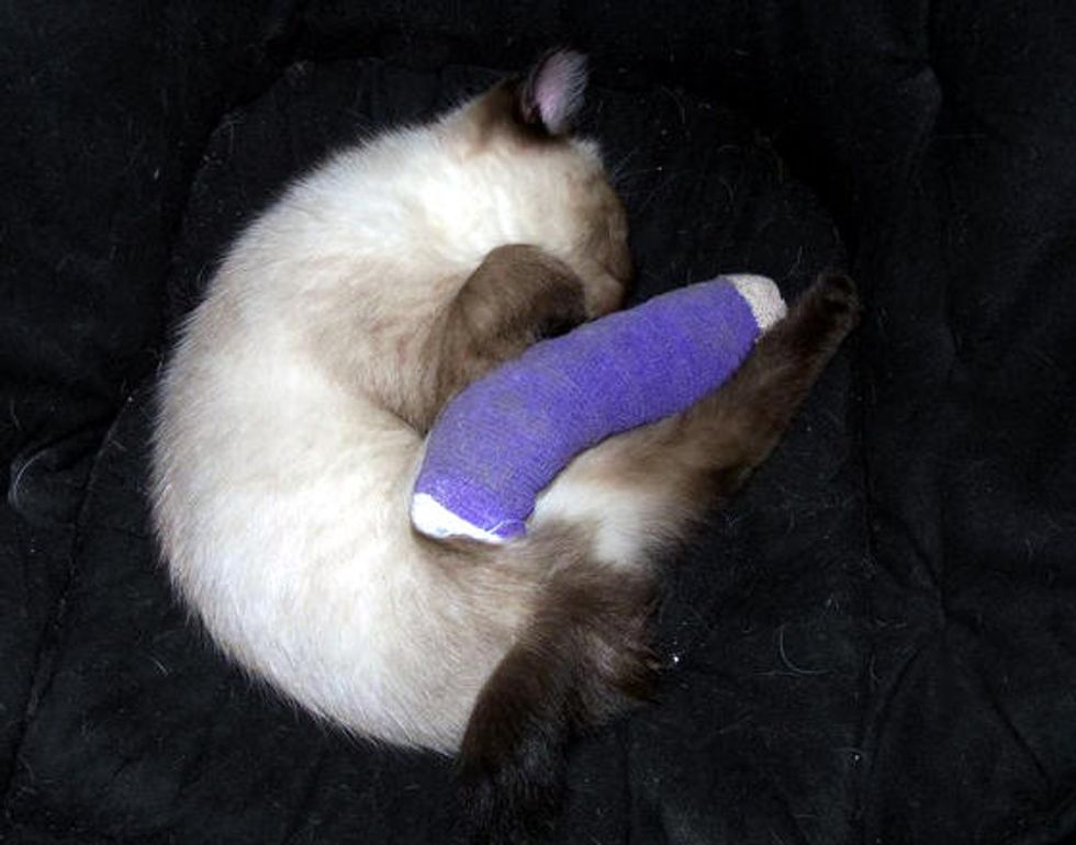 Pretzel in her pretty purple brace. She looks like she is praying.