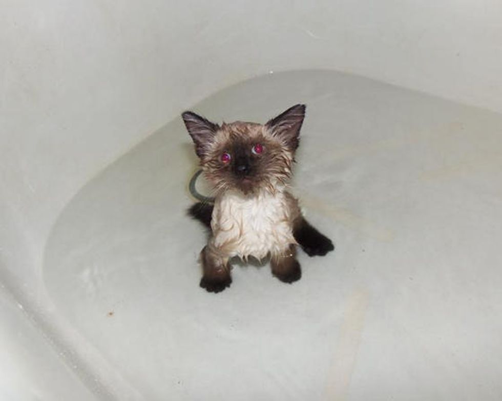 Plucky Pretzel Wonder or Pretzel for short was born with backwards hind legs and rescued from the middle of the road by Carmen Bernard, who fell in love with the little wonder kitty. Pretzel is 100% blind. Despite what the doctor said about little Pretzel's low chances of survival, Carmen never gave up on her. With a lot of love, Pretzel started purring one day. It was then she knew that she was going to be all right [Full story of the rescue].
