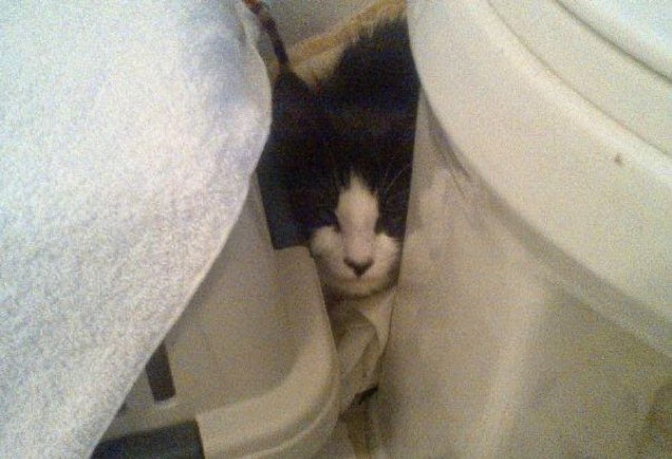 After a month, Sid came out of the bathroom. "He made himself right at home.... Soon, it was clear he was ready for his furrever home."