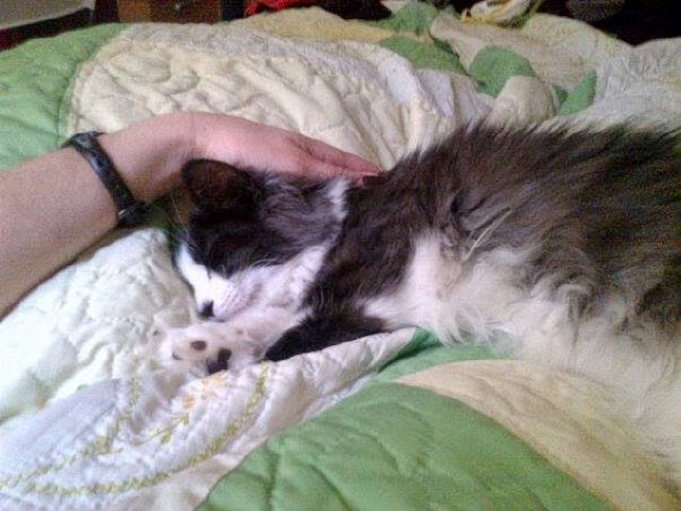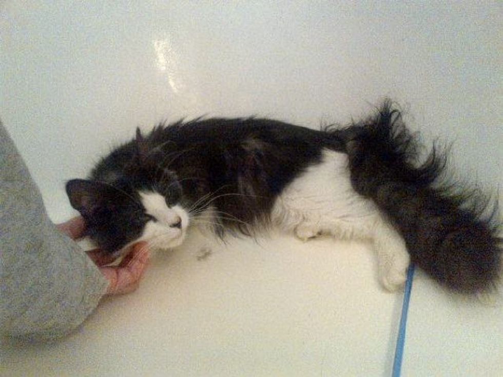 Sidney the cat was found as a stray, terrified of humans. Eva, animal rescuer from Brooklyn, New York, pulled him from the euthanasia list and Stephanie, a fosterer of Big City Little Kitty took him home to socialize. "He showed potential when I met him, so I gave it a shot. He was the most fearful kitten I have ever socialized, but he came around. It was worth it," Stephanie said.