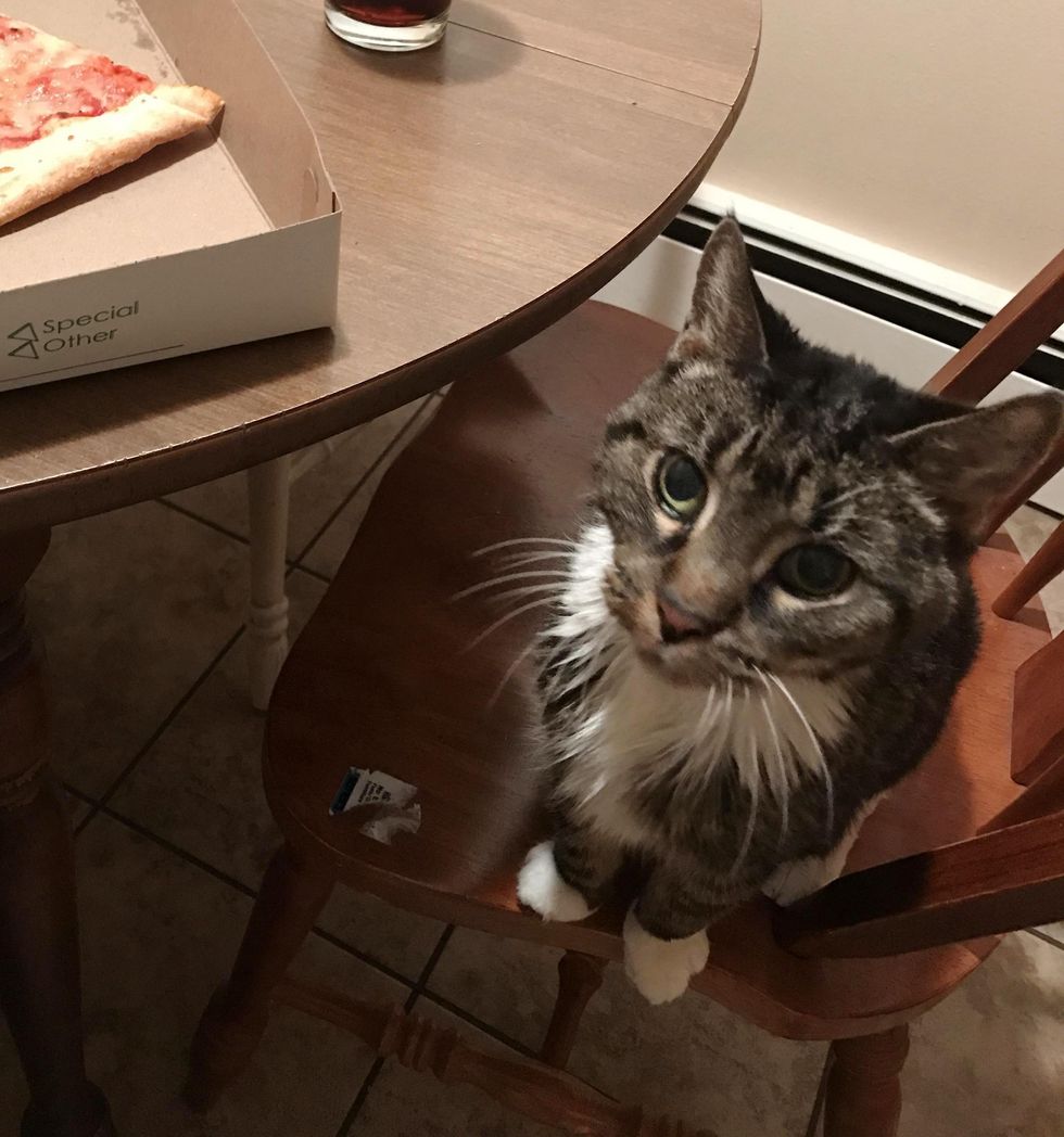 Six months before Stephanie Javarauckas found Khaleesi, she adopted a 17 year old tabby cat, Sable, who has severe separation anxiety. The senior kitty was rescued by Feral Cats of East Windsor (Connecticut) from a neglecting household.
