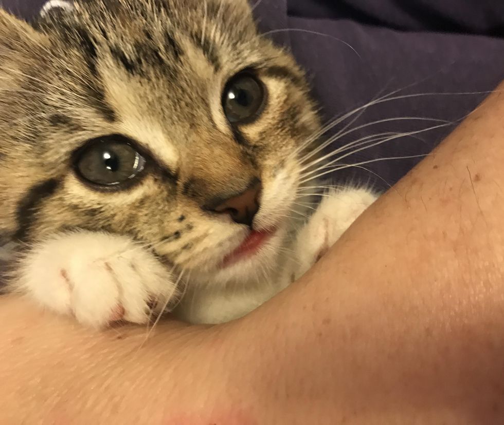 After Khaleesi came home with Stephanie, she cuddled up to her new family, purring up a storm.