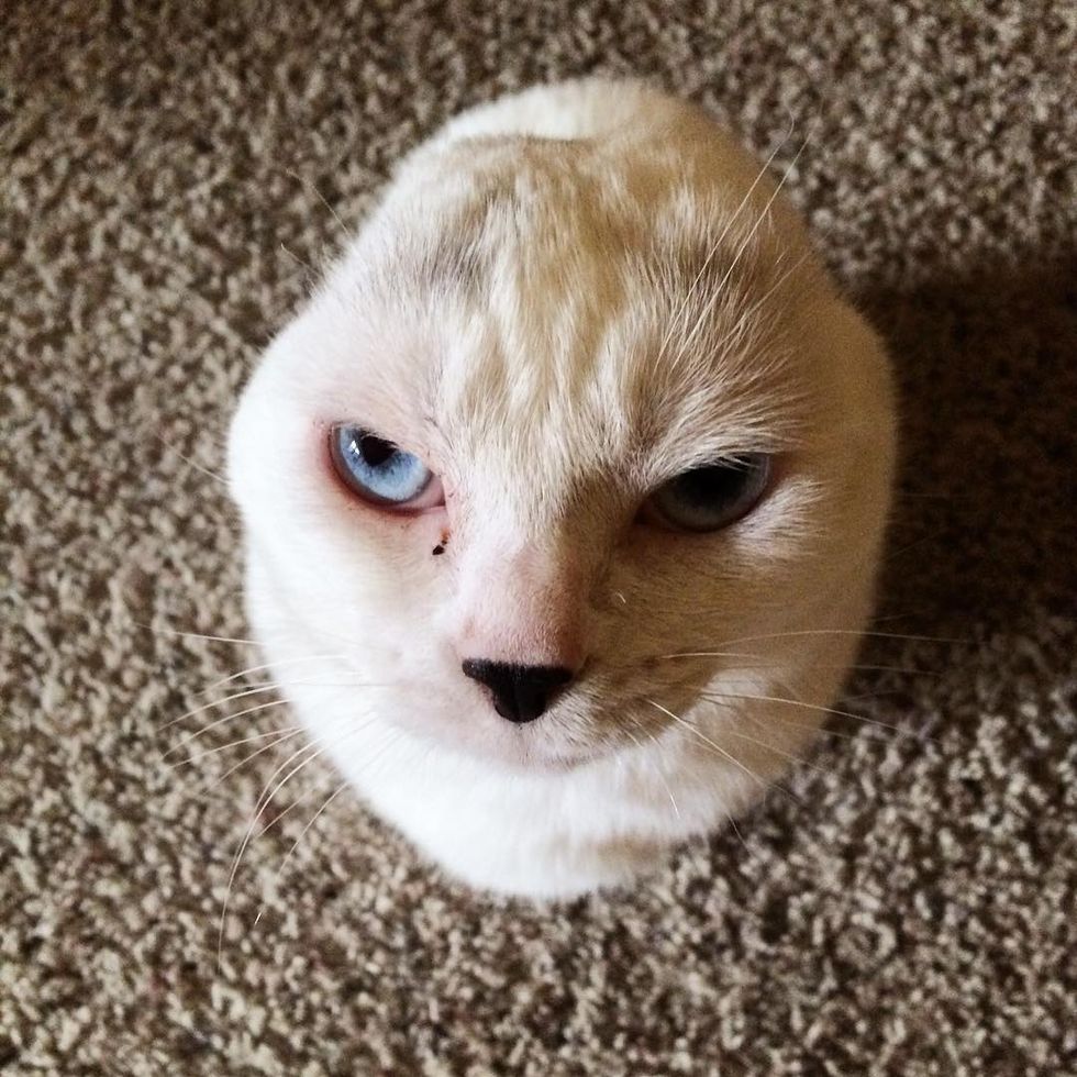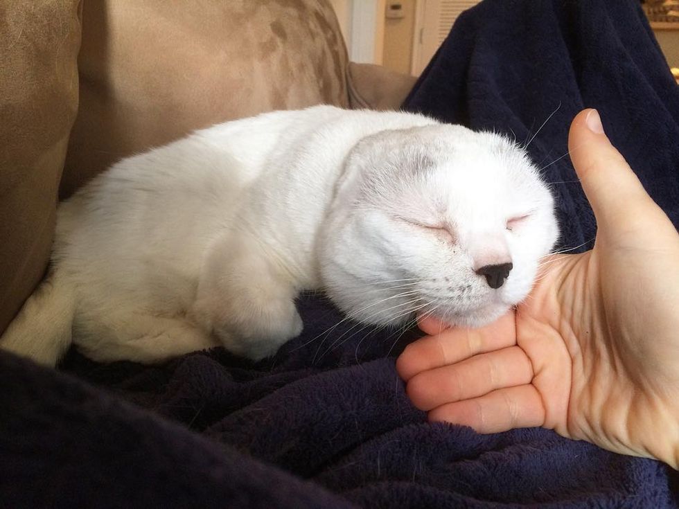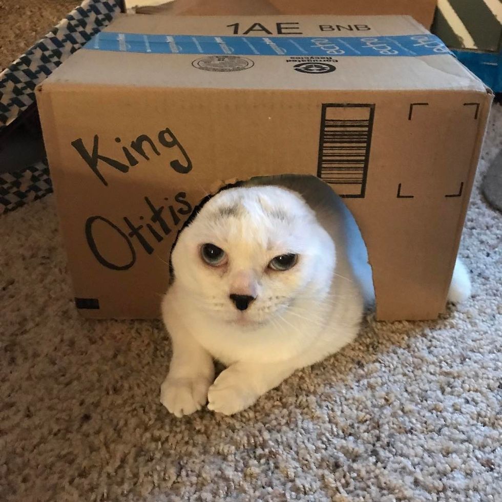 Molly went online and came cross a 9 and a half year-old cat who caught her attention immediately with his seal-like resemblance. "When Otitis popped up, I knew he was the one."