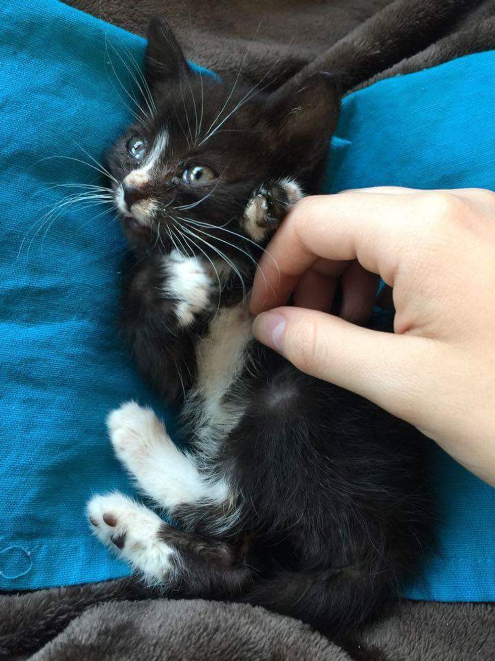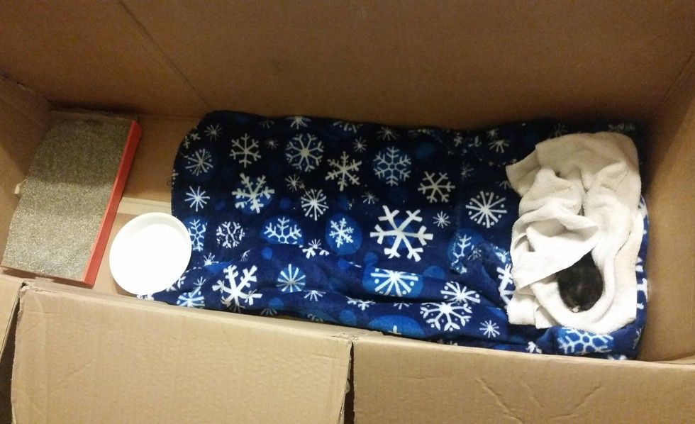 After getting some supplies from urgent care, she brought the kitten home and set up a makeshift bed for the tiny fur baby. Little Bane purred and slept throughout the night.