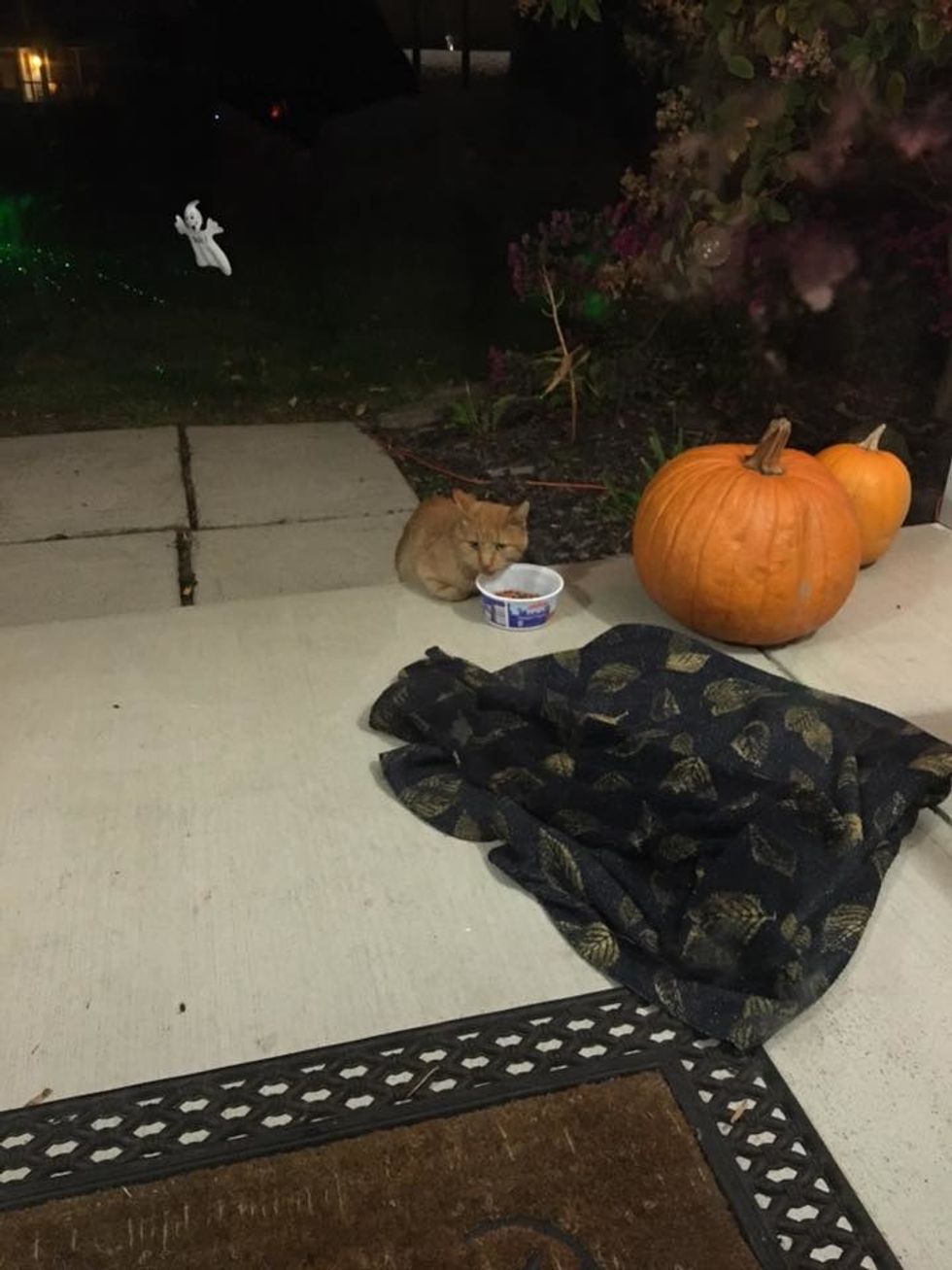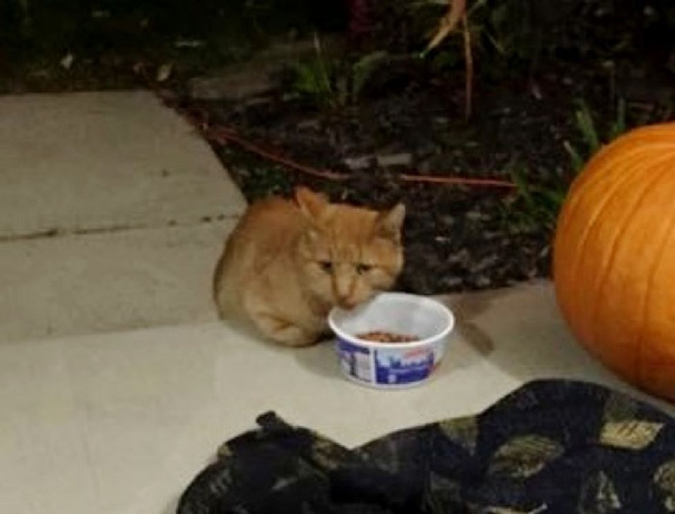 It's a mystery how Buster ended up living a wandering life. The stray cat came to the family's front porch in late October and just sat there, hiding his paws as if he was trying to protect them.