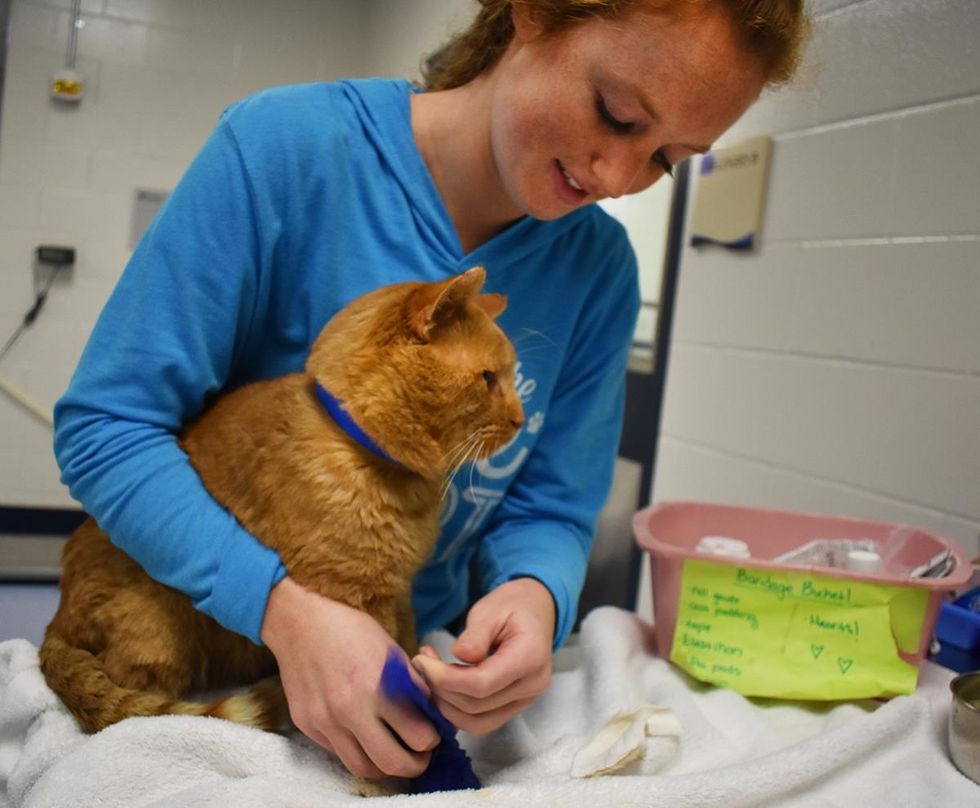 The sweet ginger boy began daily treatments where staff cleaned and dressed his sensitive paws.