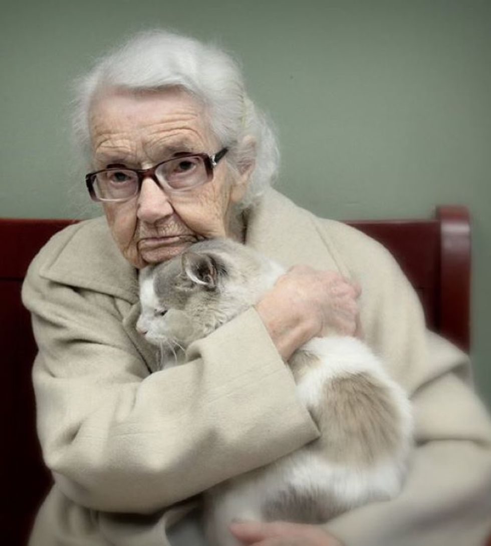 A 102-year-old woman found her a little companion, a 2-year-old shelter cat, when she held him in her arms for a photo.