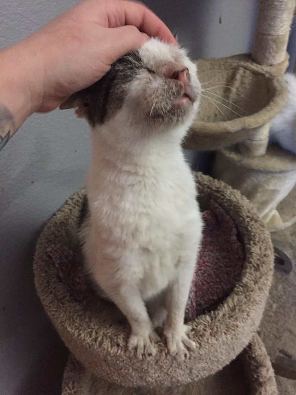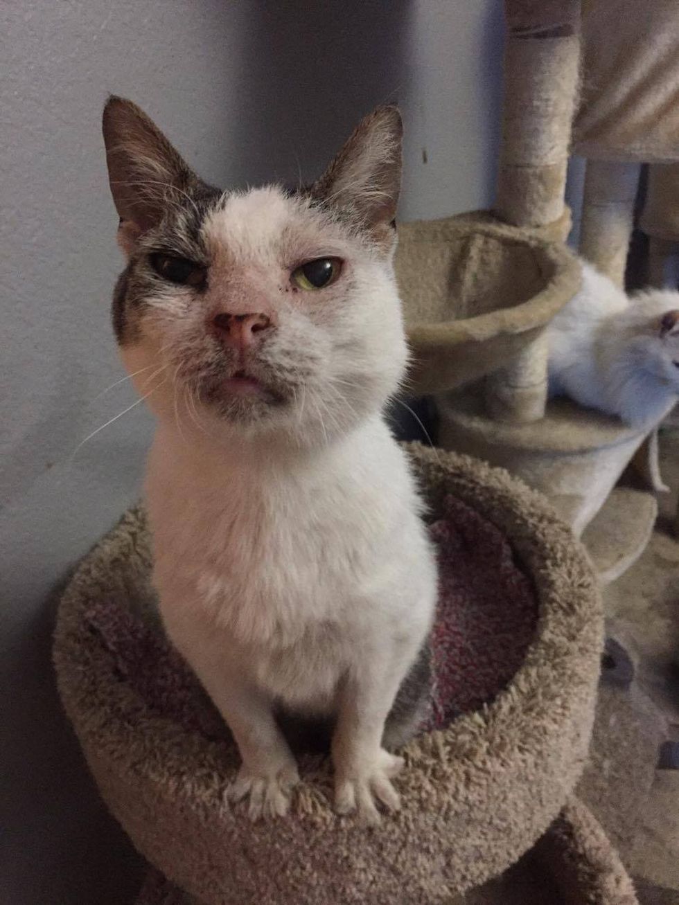 Share this story with your friends. Follow this sweet old boy and other resident cats at Kitty Adventure Rescue League and Sanctuary on Facebook. They provide life-long care to disabled, special needs, and elderly cats. If you would like to support their rescue efforts, click here to see how you can help.