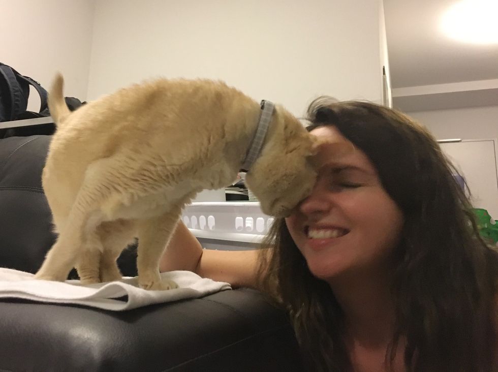"He won't leave my side. He is extremely affectionate, head bumping and weaving around my legs."