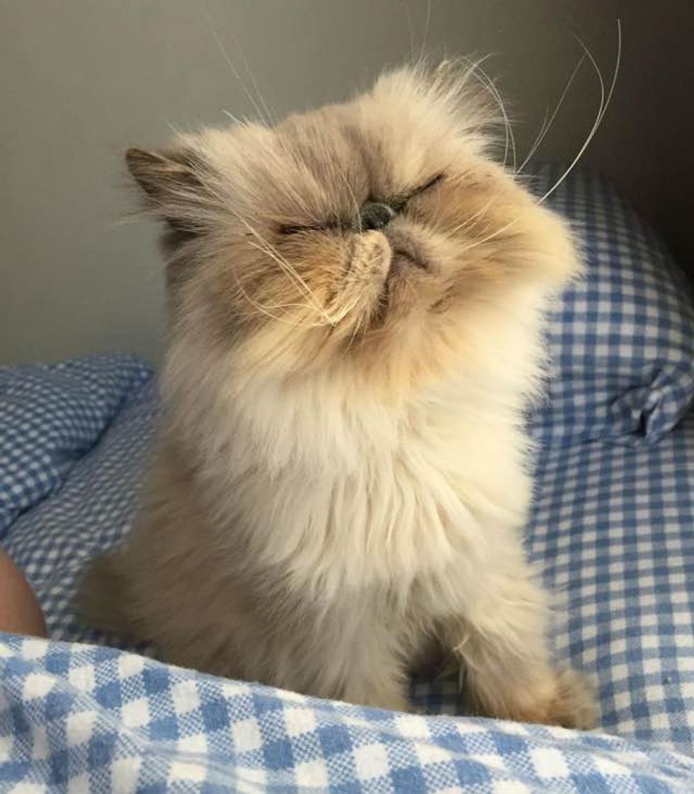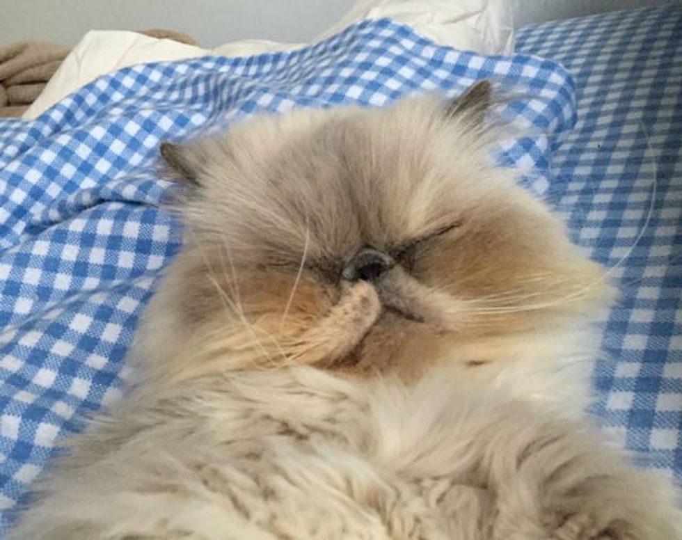 "She's 14, and has had a (rough) life, but remains a super calm kiss face anyway. My life isn't perfect, but it feels good to be (partly) why this cat is happy now," reddit user orald said.